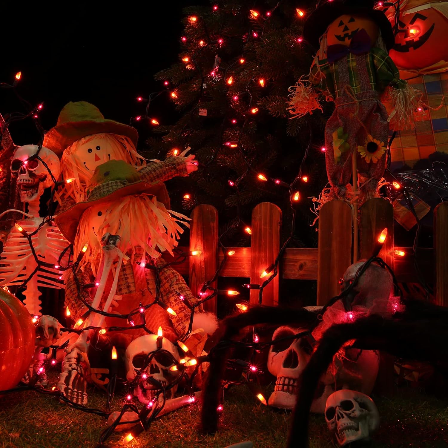 • UL Certified & Connectable Halloween String Lights: Built in fuses, universal 120V UL certified, safer to use when decorate your Halloween theme party. The purple orange string lights with male and female plug, it can be connected end to end to meet your decoration needs, up to 5 sets (500 lights).