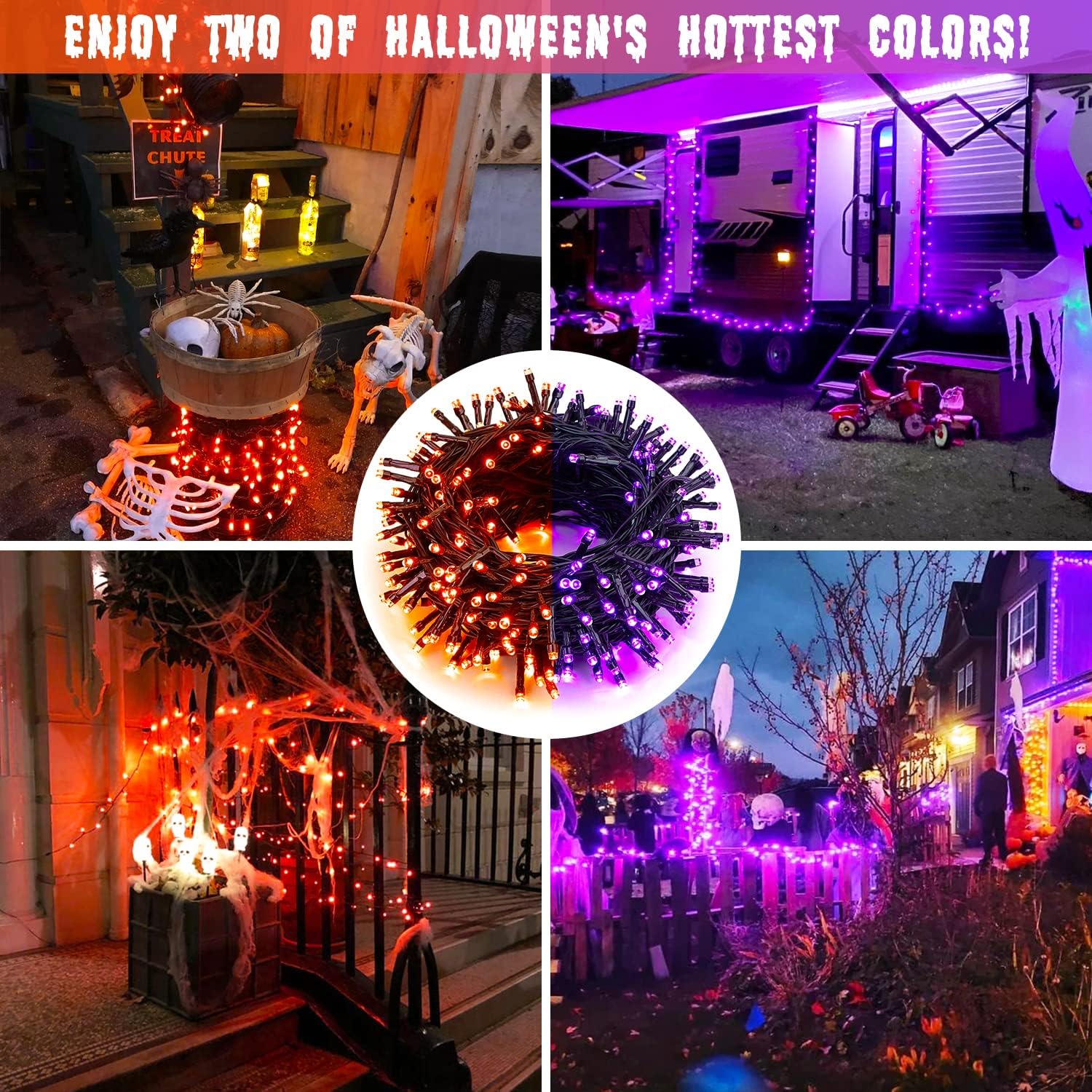 • Orange and Purple Halloween Lights: Still stuck on choosing from purple or orange string lights? Now, with our new orange and purple Halloween lights, you can get home with both of the hottest colours for Halloween. More surprisingly, these two colours can be mixed to create a special novel pink! Come and try yourself
