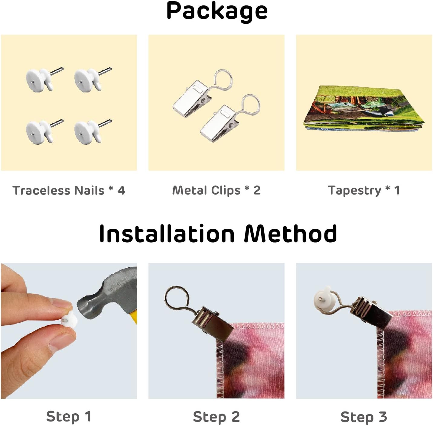• Package: Package includes 1 Tapestry,4-6 Seamless Nails,2 Clips,which can help you hang up easily.The non-trace design will leave smaller hole and less damage to the wall.