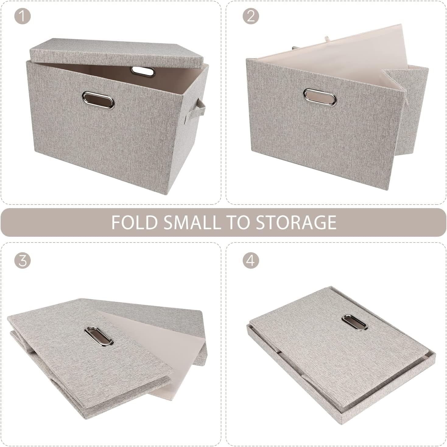 • ✅[Foldable Space Saver] Our Sturdy collapsible storage bins can be folded flat into lid and easy to be assembled. They can hide and hold numbers of clutters, freeing up amount of space and making everything looks organized. When you don't use them, they are very easy to be stored or carried with.