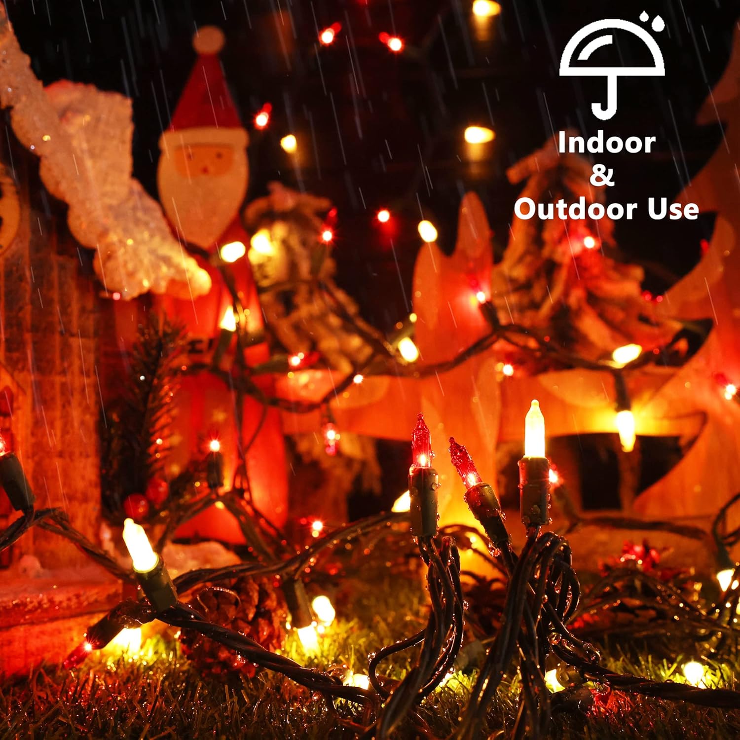 • 300 Red White String Lights: Old-fashion Red & White bulbs Christmas lights set, creates a cosy festive atmosphere, surely lights up your living/dorm room and house, welcome sign at night and let your home become a fantastic sight to behold in your neighborhood!