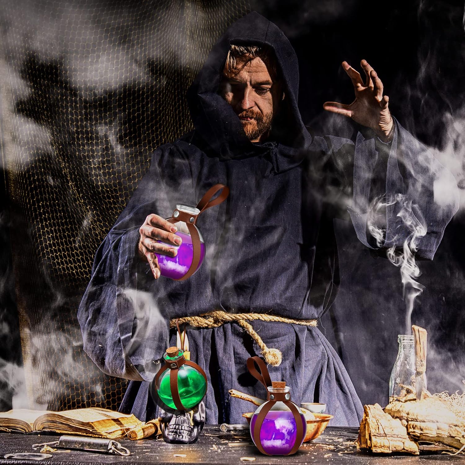 • Package Content: the package comes with 2 pcs round cork bottles, 2 pcs medieval knight artificial leather belts, a good combination that will help you add ambiance to most witch or wizard related costume