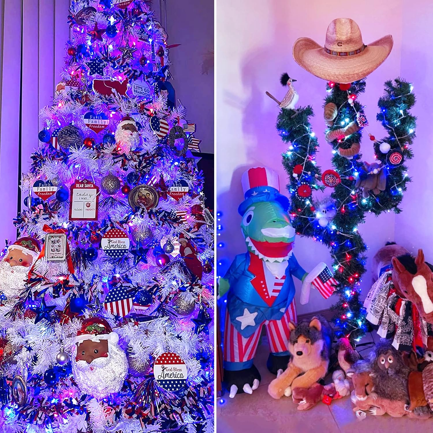 • 【Indoor & Outdoor Patriotic Lights】These patriotic lights are suitable when you decided to completely switch your Christmas tree theme, these lights are working like a champ! When you wrap them around a wreath, Christmas tree, or bush, the clear wire design blends perfectly with the background, fill your home with a patriotic atmosphere. Besides, our patriotic Lights are perfect for decorating gardens, porches, patios, bedrooms, and other places at 4th of July decor.