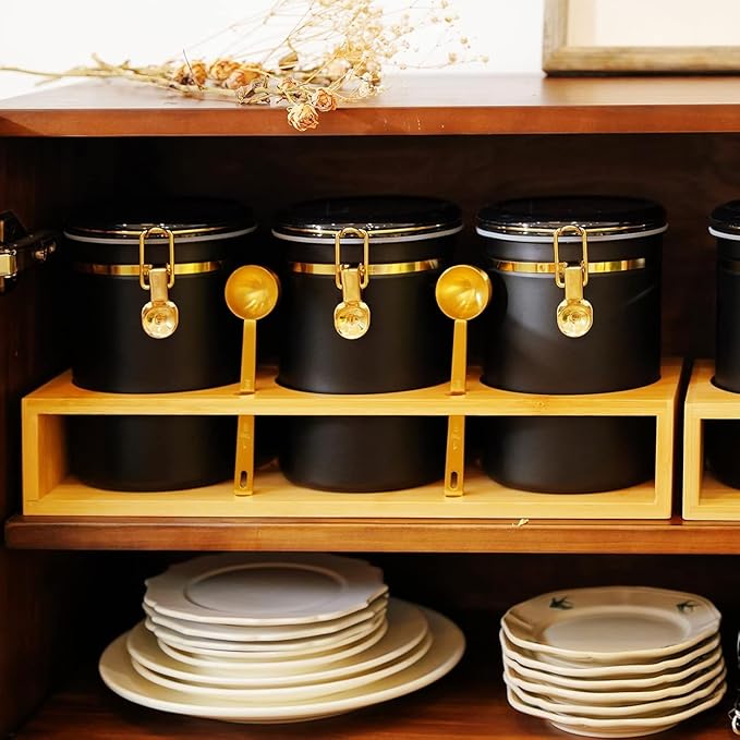 Yangbaga 304 Stainless Steel Coffee Canisters for Ground Coffee,3 x 63 OZ Coffee Container with Shelf Coffee Bean Storage, Food Storage Jar with Gold Airtight Locking Clamp and Spoon for Kitchen