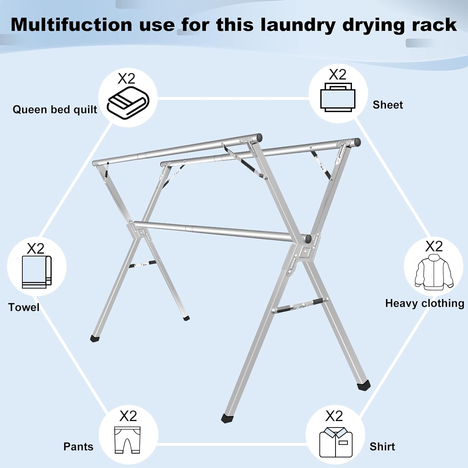 • 👗Sturdy & Heavy-duty - Laundry drying rack outdoor is made of stainless steel, rust-proof and durable. It is strong heavy-duty to hold blankets, sheets, jeans, sweaters, and not wobbly at all when placed outside, even meets a strong wind.