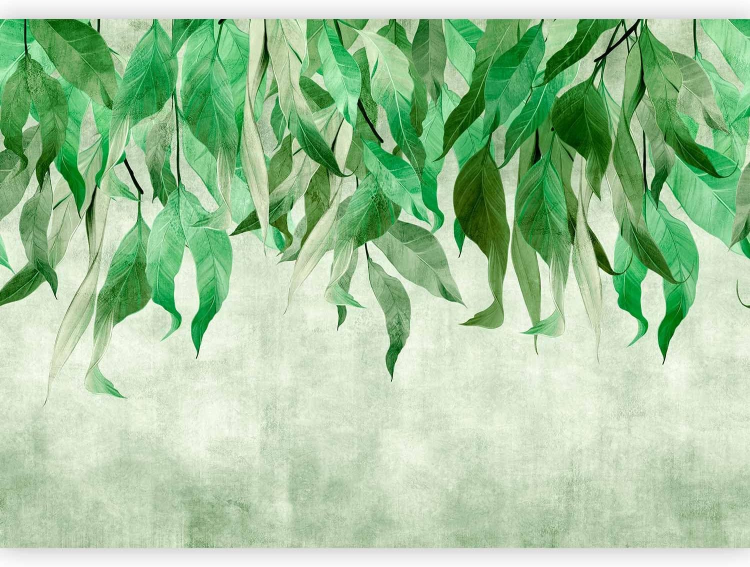 artgeist Wall Mural Hanging Leaves 177x124 in - Non-Woven Wallpaper Fleece Wall Decor Photo Print Picture Image Design Nature Botanical Concrete Green Like Painted b-C-10146-a-a