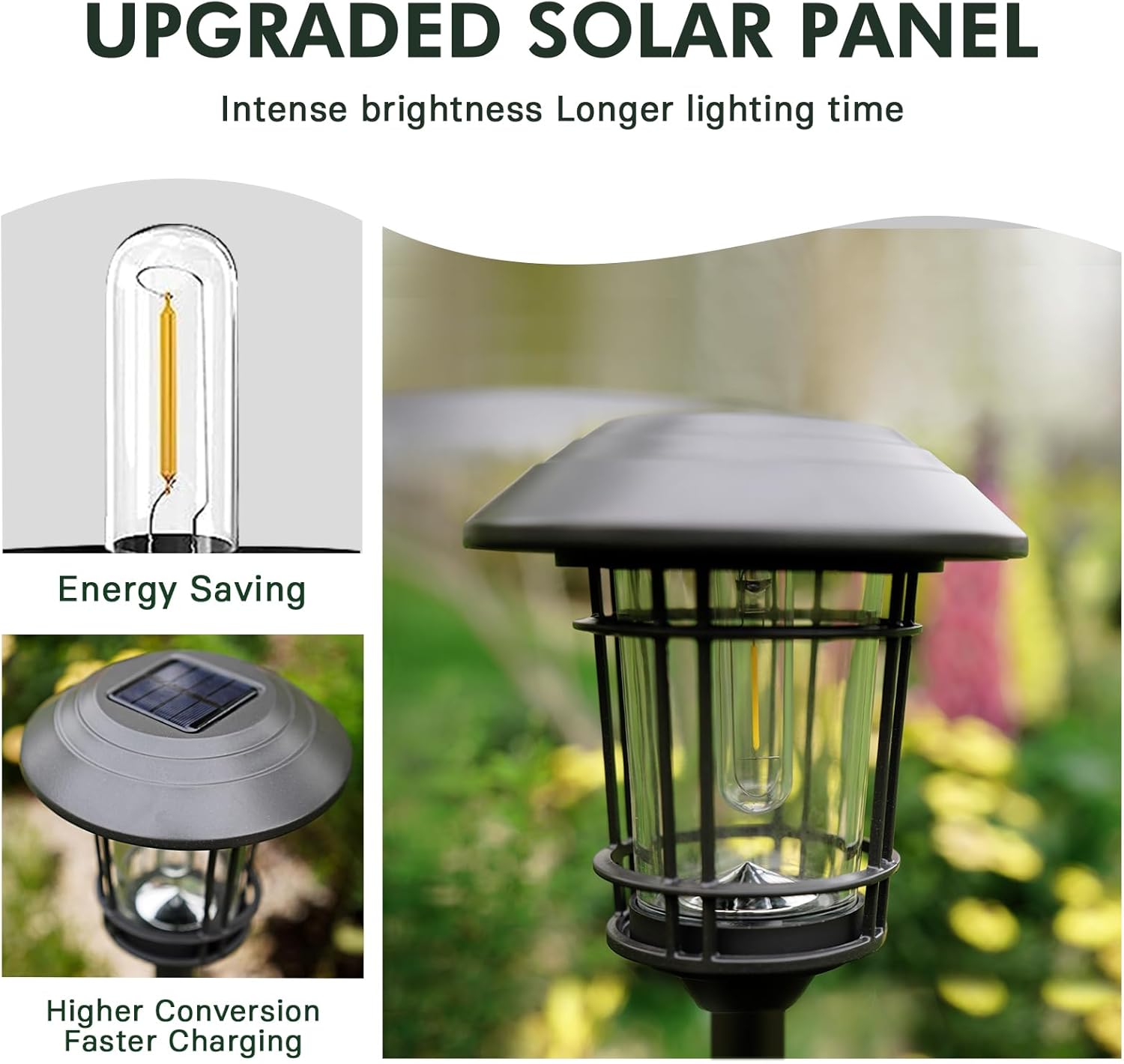 • SOLAR POWERED: The Edison-style and solar powered light bulbs are bright and cast a soft, cozy glow to your path. With warm light design our solar path lights can decorate your garden, patio, lawn, yard or driveway