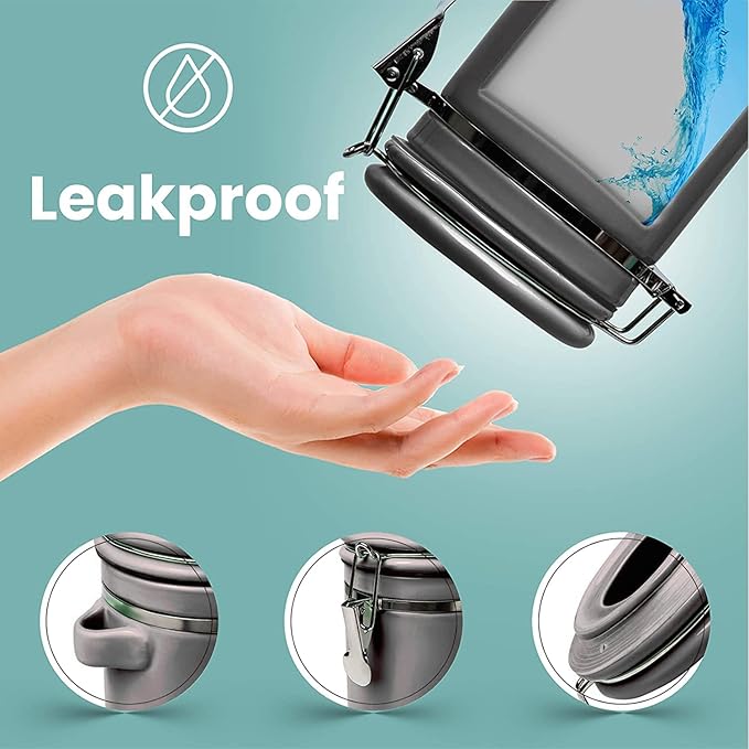 • AIRTIGHT SEAL FOR UNBEATABLE FRESHNESS: Featuring an airtight lid with silicone gaskets and a metal latch for perfect seal, this handy canister set will preserve the flavor of your supplies and keep them fresh and delicious. Perfect for any type of coffee, tea, sugar, flour, salt, candy, spices and so much more. Plus, they are 100% leakproof to prevent any messy spills