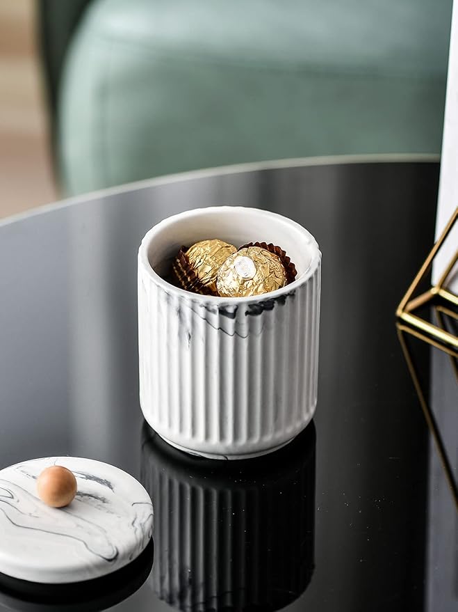 • Storage Fashion - These stylish ceramic jars and bathroom trays save space and decorate your home, stylish and organized presentation your powder room, bedrooms, bathroom,vanity organizers, shelves, entryway tablesand are also perfect for your kitchen or office,which takes very little room.