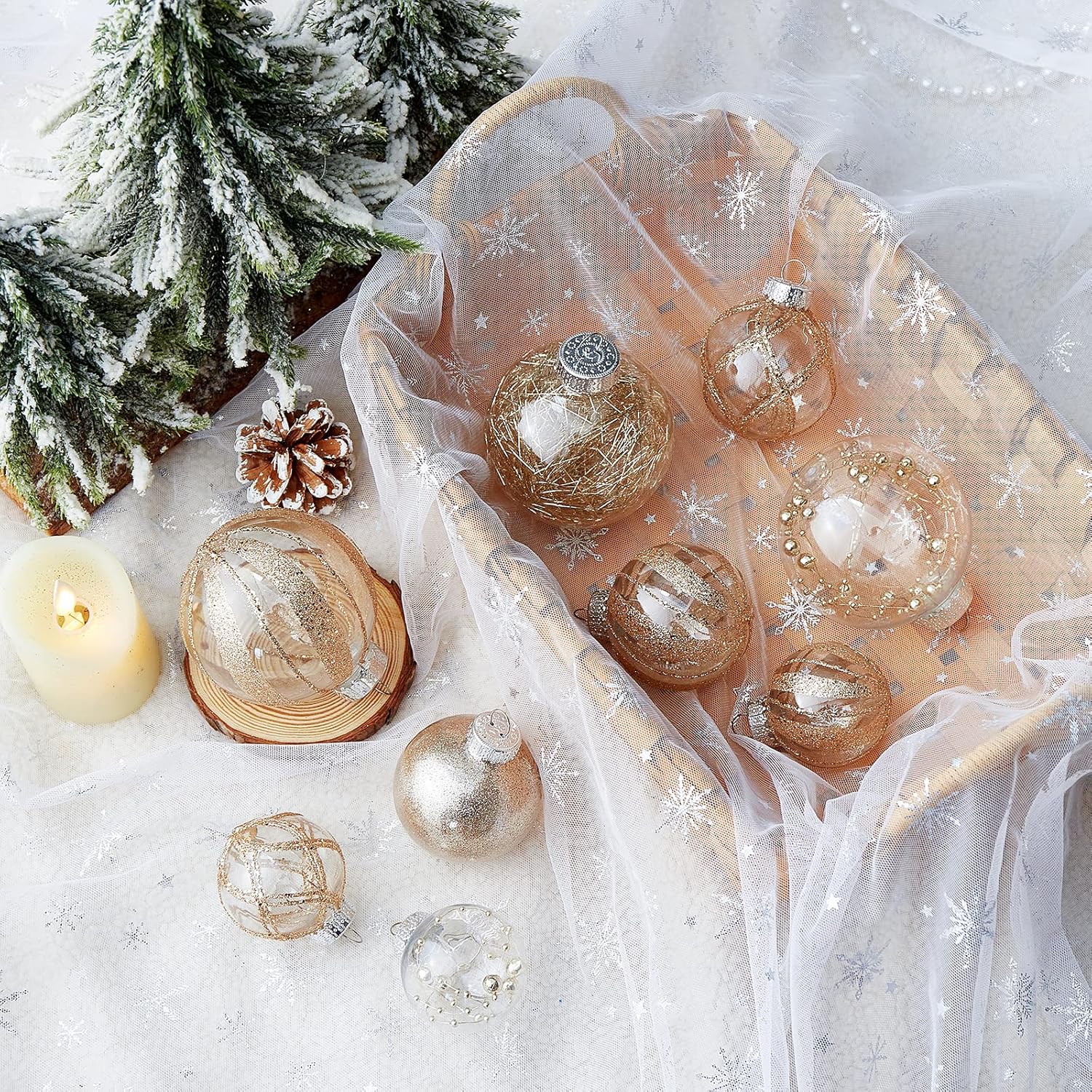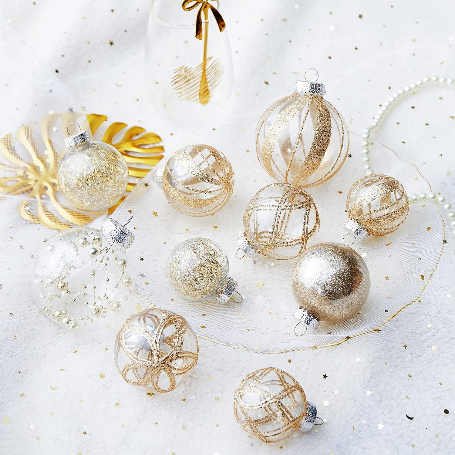 • Champagne Christmas Ball Ornaments--These 24 clear Christmas decorations are made of durable and environmentally friendly plastic with excellent shatter resistance. These Christmas balls have shiny decorations and a transparent glaze base, which are perfect for hanging on your Xmas tree and decorating your Home with them,this will become part of your vacation.