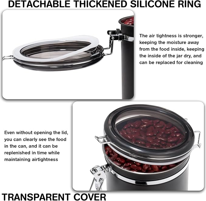 • SEALS WELL & AVOIDS SUNLIGHT: this stainless steel coffee container has a metal lock and a silicone gasket, which not only meets the storage of sunlight avoidance food, preventing coffee and other food from accelerated deterioration due to sunlight, etc., but also this design makes it easier for the user to open and close the container, and also prevents moisture from entering in the air to avoid harmful oxidization and keep the jar dry, which helps to keep the freshness of the coffee beans.