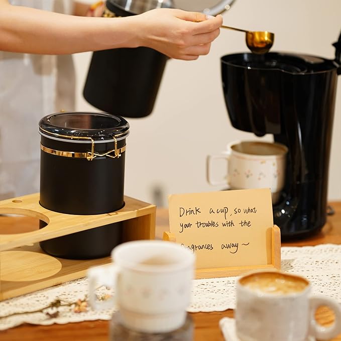 • KEEP THE DESKTOP TIDY: The coffee Containers set includes a wooden storage shelf and a Gold iron coffee spoon, which not only facilitates users to organize and categorize similar foods, make the desktop more tidy, and use the cans more conveniently, but also can decorate your desktop and let Your desktop is no longer monotonous.