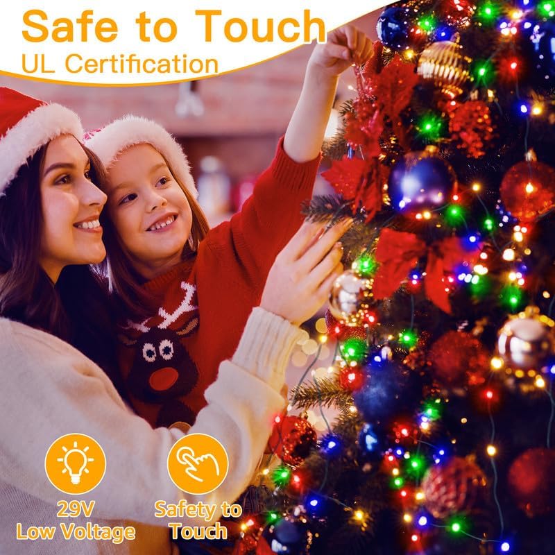 Ollny Christmas Lights, 198 FT 600 LED Outdoor Waterproof Plug in Christmas Tree Lights with 8 Modes Remote Timer, String Lights for House Yard Outside Indoor Xmas Decorations Multicolor