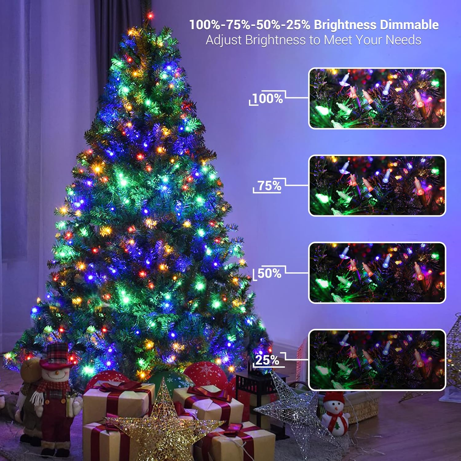 • Dimmable LED Color Changing Christmas String Lights with memory function: 100%-75%-50%-25% 4 level brightness, create suitable, comfortable atmospheres at your needs according to various occasions. Noted: While in multicolor modes, all the colors (including red, yellow, blue and green) will be shown together, no specific colors can be set up! Built-in memory function, remember your last mode, no need to reset every time.