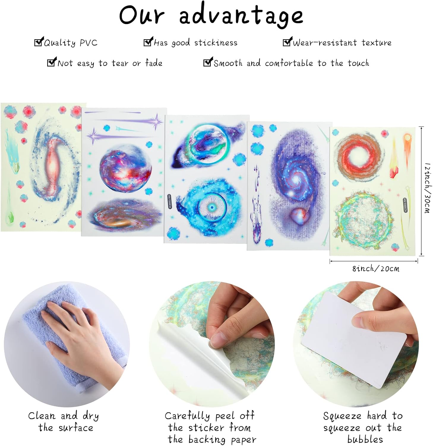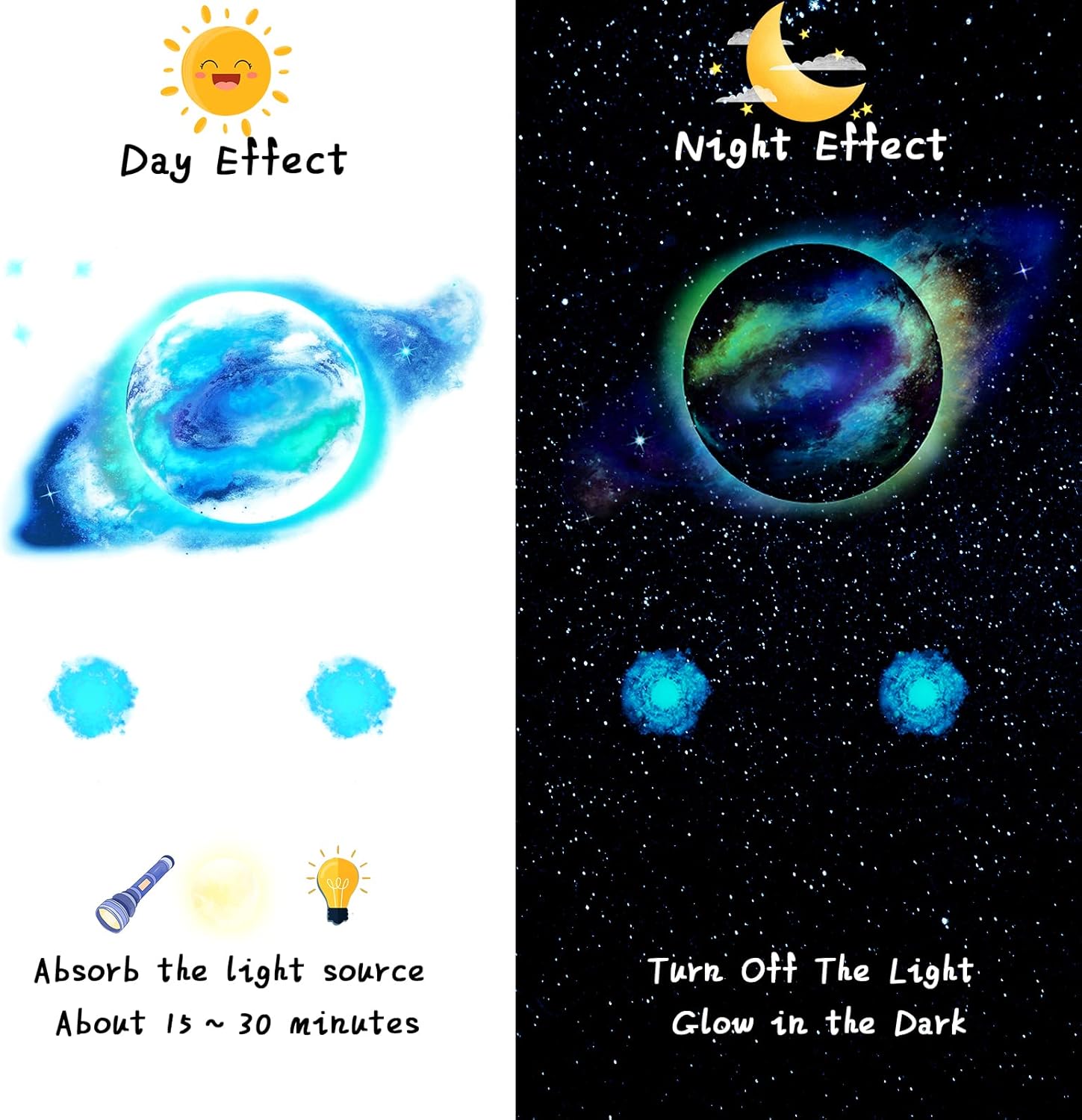 • Glow in the dark: after absorbing the light for 15-30 minutes, these glow in the dark star decals would shine in the darkness automatically, light your universe and let your immerse in the quiet and ease atmosphere; Nice tools to lull children to fall asleep