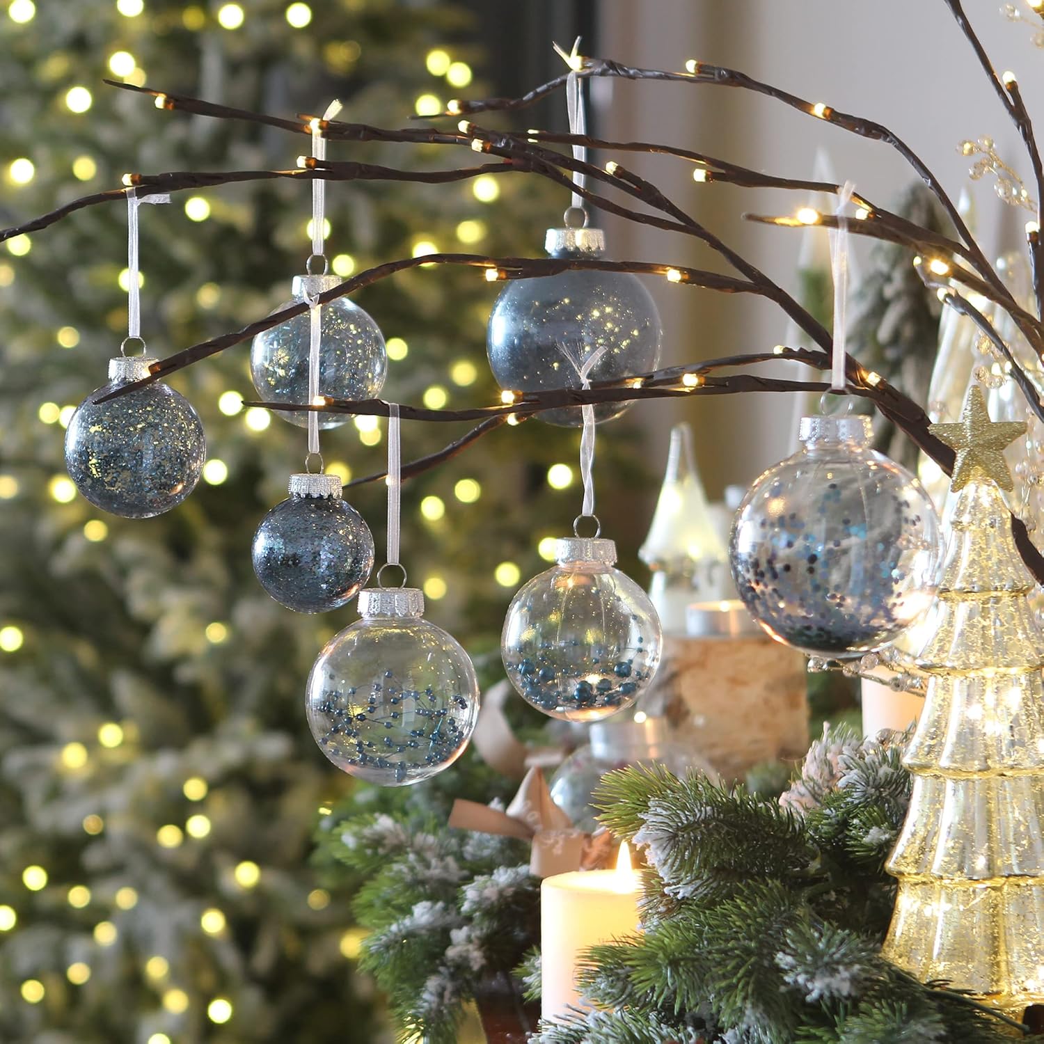 • DISMOUNTABLE TOP WITH RIBBON - Each ball ornament equips a dismountable metal top and comes a string thats already hook to the bulb for easy hanging. With the dismountable top, you can also stuff the clear ball with your favorite decorations