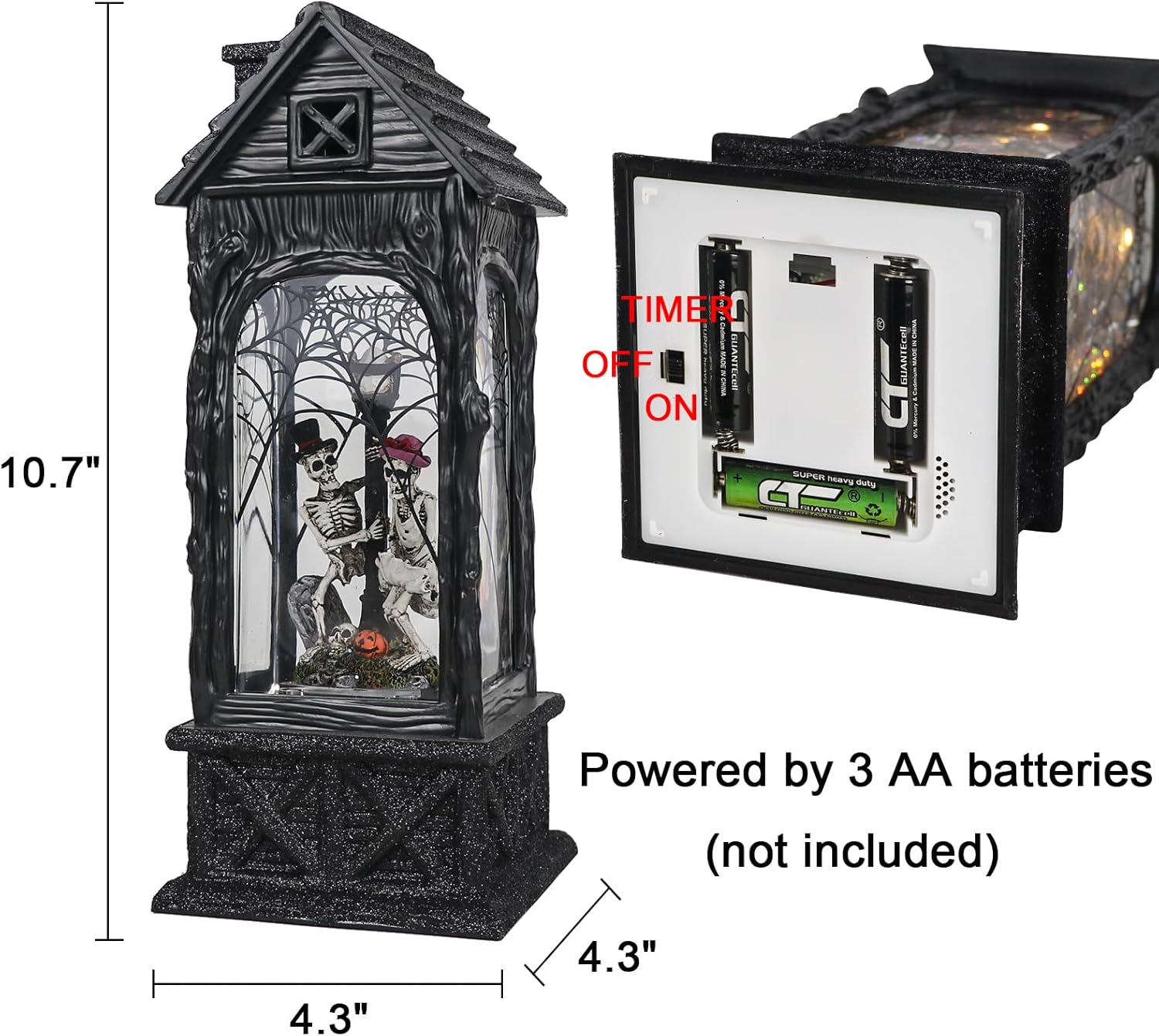 Eldnacele Halloween Ghost Projection Snow Globe Lantern with 6-Hour Timer, Lighted Plug-in & Battery Operated Water Glittering Snowing Globe Lamp for Spooky Fall Halloween Indoor Decoration(Skeleton)