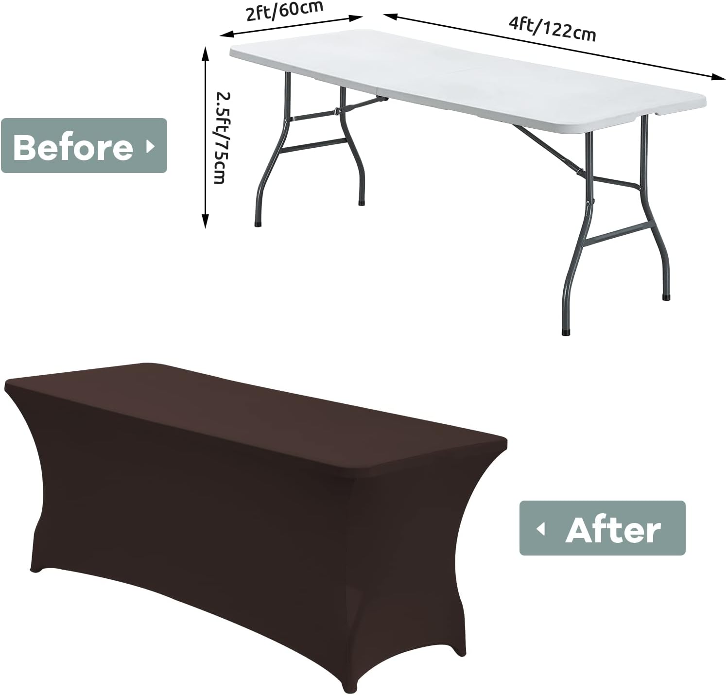 CWK 4FT Waterproof Stretch Spandex Table Cover for Rectangular Tables - Elastic Fitted Tablecloth for Folding Tables,Wrinkle Resistant Table Cloth for Parties, Weddings, Banquets & Events (Coffee)