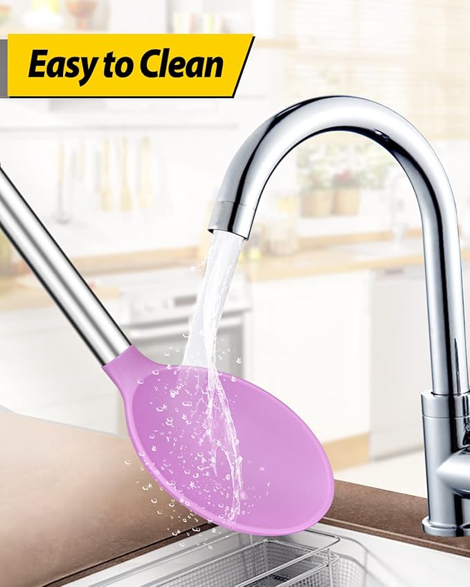• More Safe and Healthy : Our silicone spoons are made of food-grade silicone, free of BPA;Even at high temperatures, there is no need to worry about melting or deforming;And the soft silicone head won't scratch the coating, it can better protect your pot