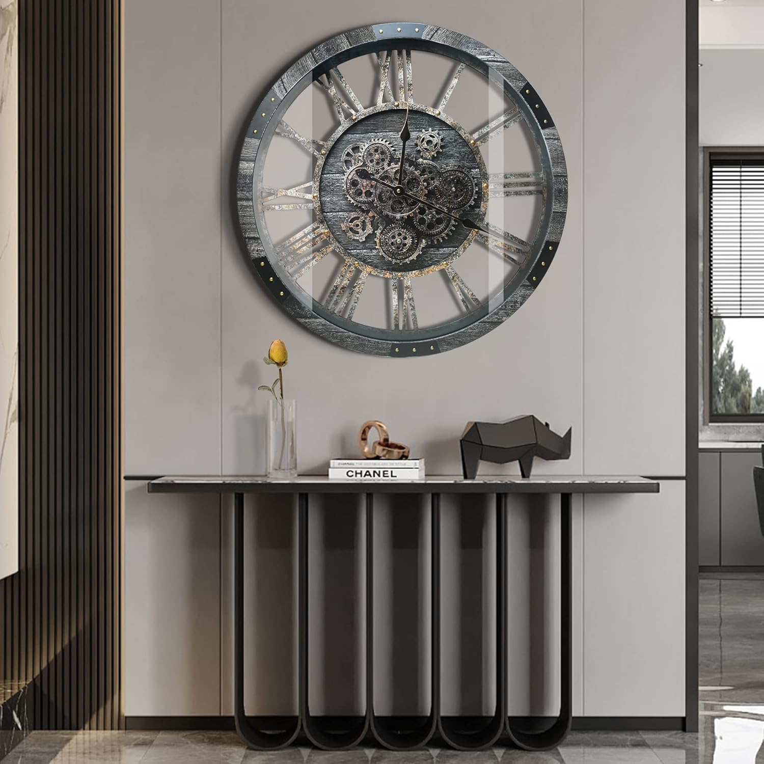 • Special Feature : moving gears wall clock, HD tempered glass cover, artificial rust-imitated treatment