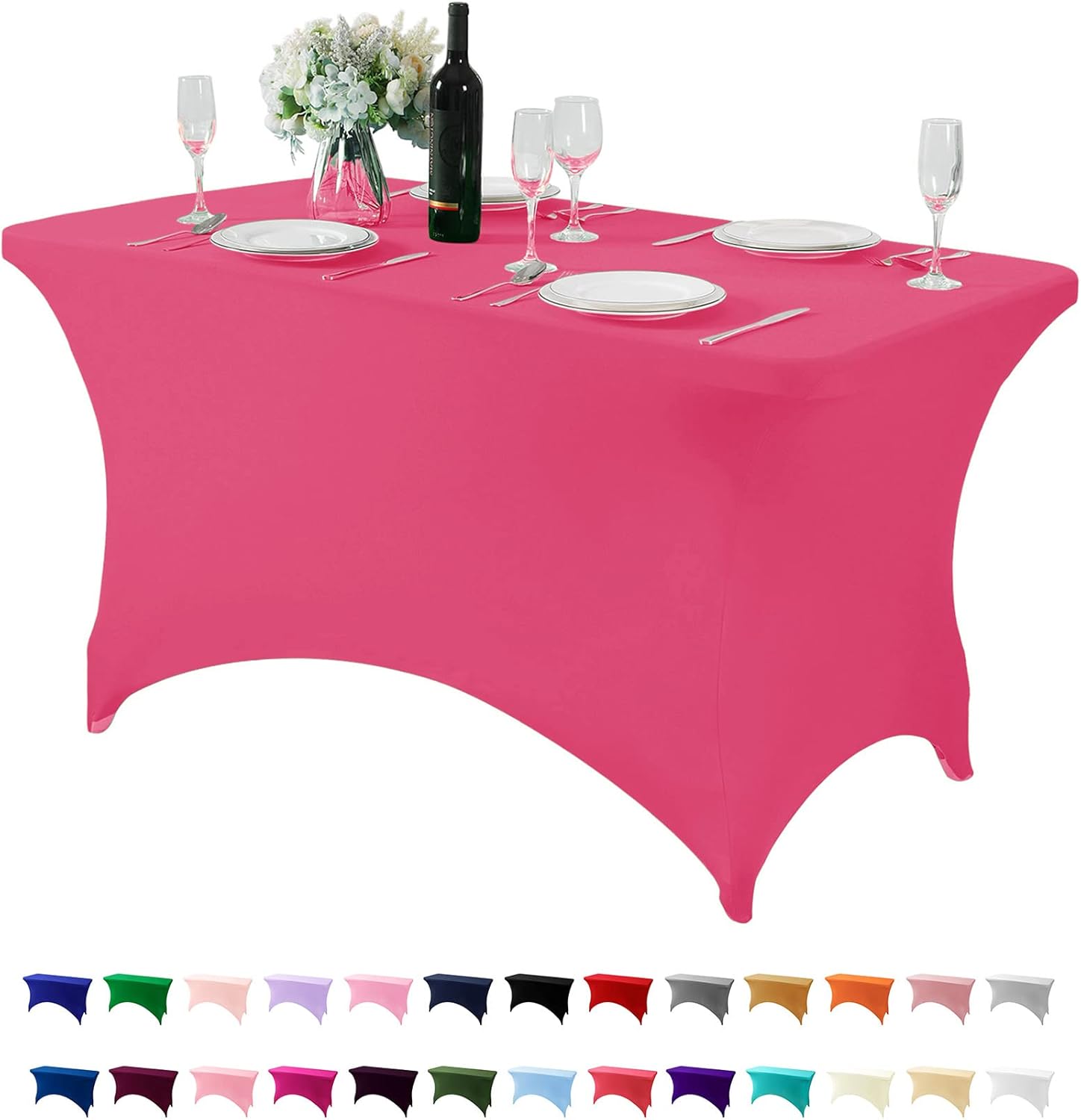 Spandex Table Cover for 4FT or 6ft or 8ft Table Universal Fitted Stretch Tablecloth for Party, Banquet, Wedding and Events-Hot Pink