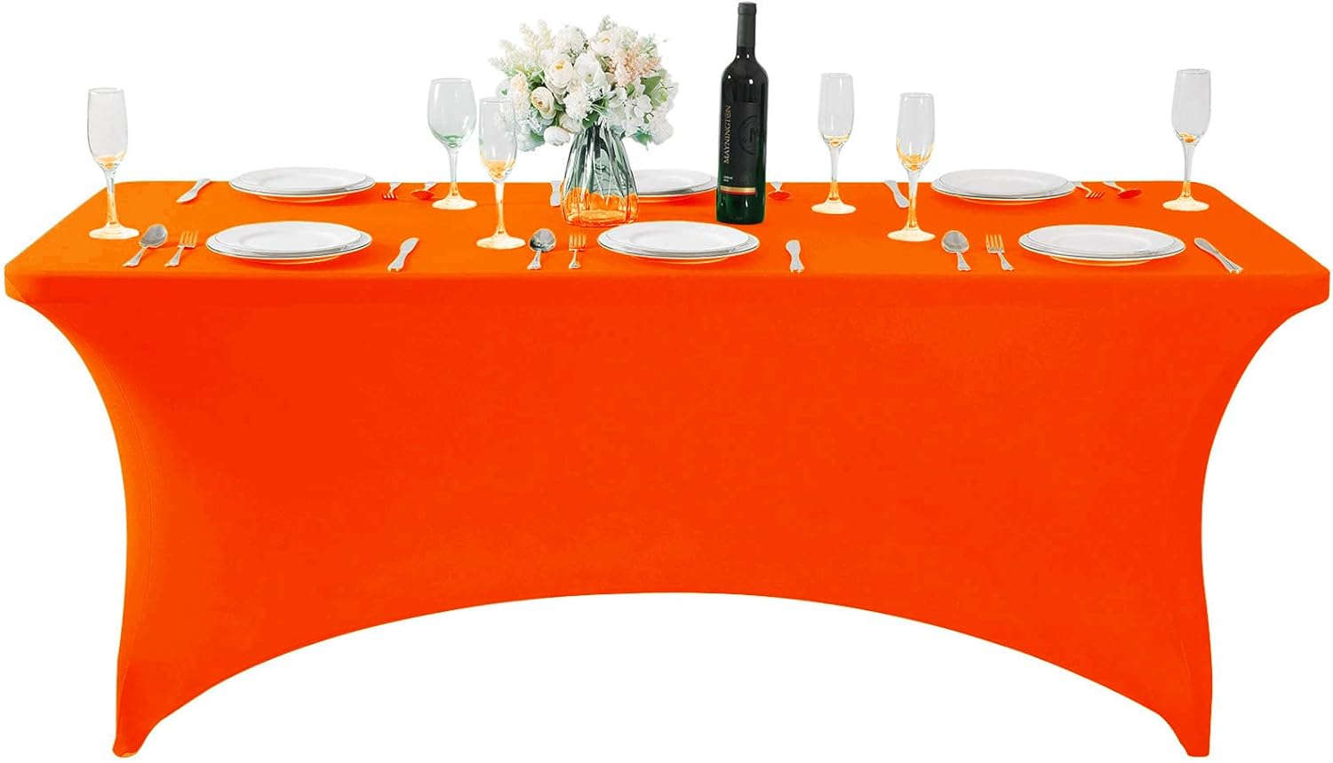 Spandex Table Cover for 6Ft or 4fT or 8ft Table Universal Fitted Stretch Tablecloth for Party, Banquet, Wedding and Events-Neon Orange