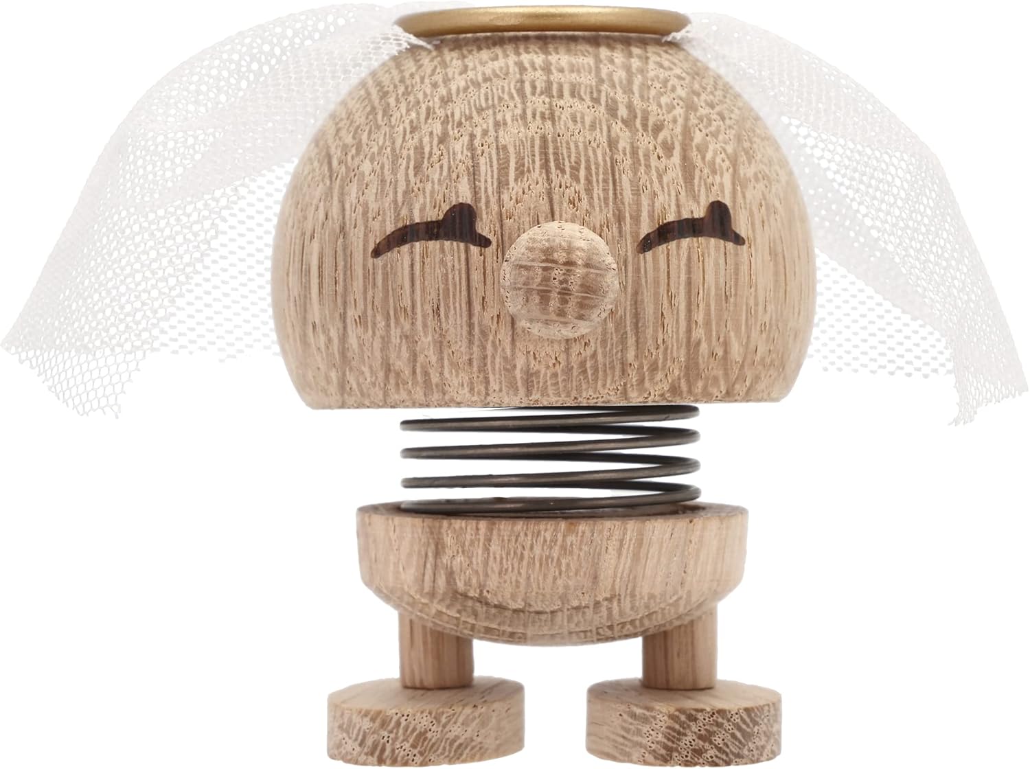 Hoptimist Bride Raw Oak, Wood, Home Decor Ornament - Scandinavian Design, Wood W/Metal Spring, Small - Creates Cheerful Movement