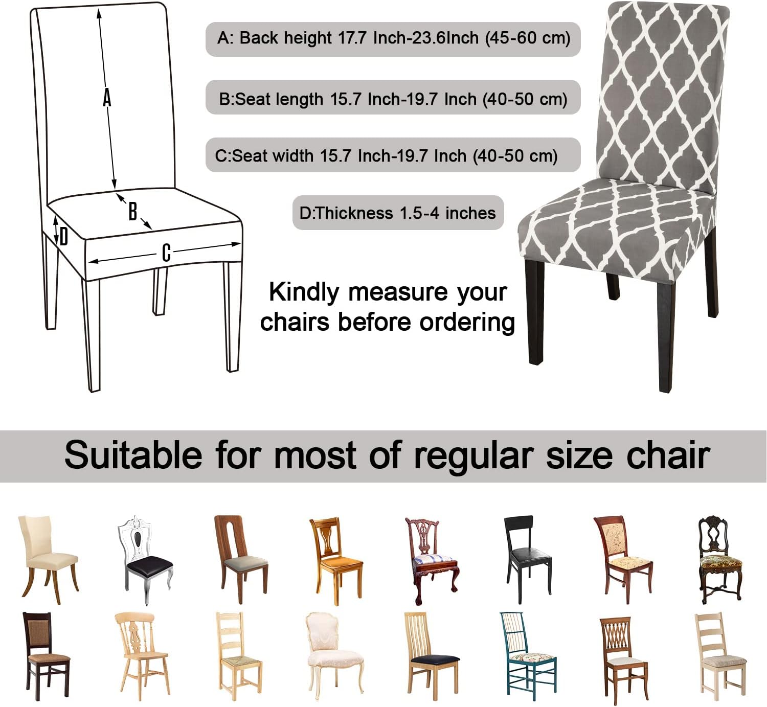 • 【High Quality of Chair Cover】- JQinHome dining room chair coversare made of durable and high persistence polyester and stretchy spandex fabric, soft, comfortable and wrinkle resistant, no ironing required; Stretchable Material,stretch that recovers quickly,secure fit with sewn-in elastic hem.