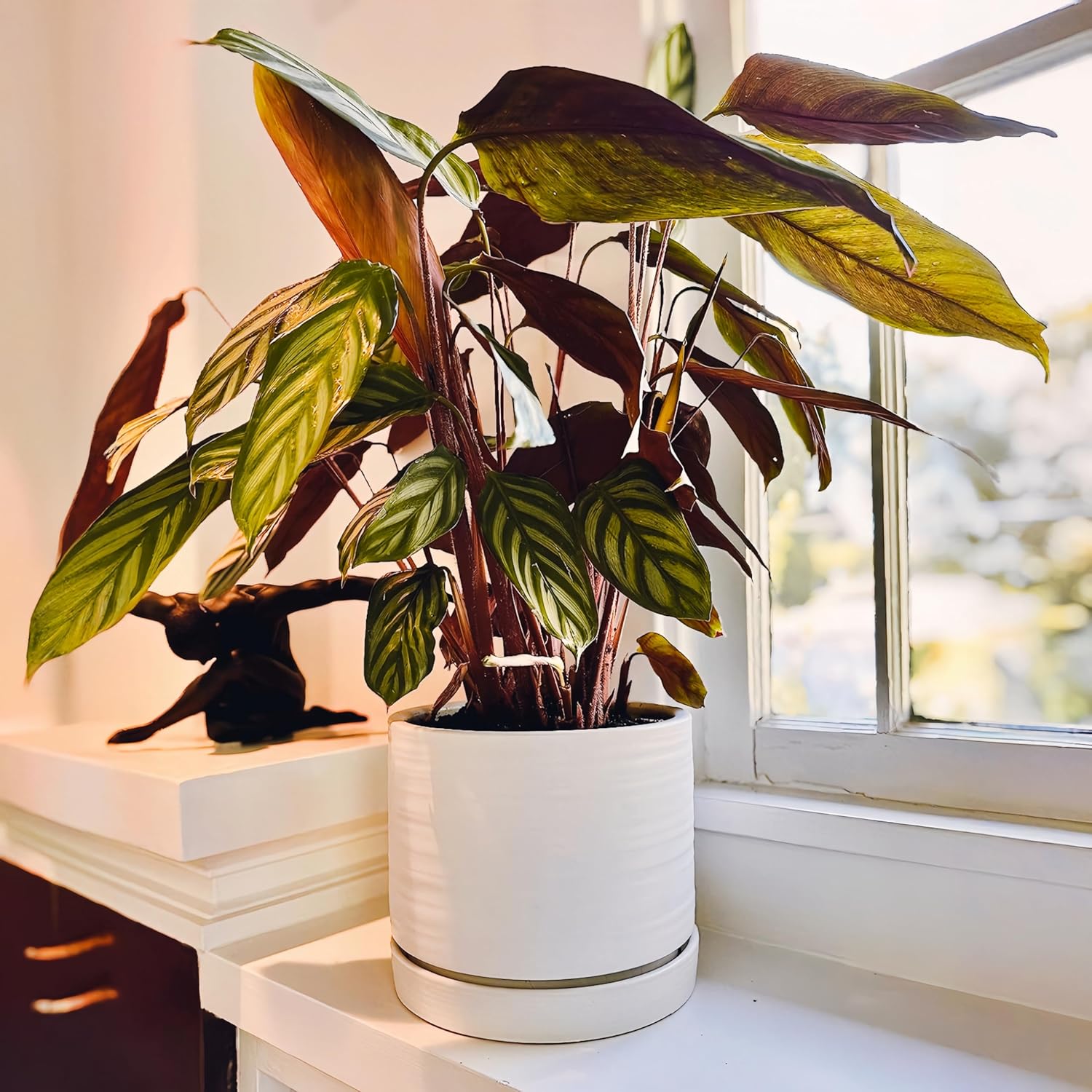 8 Inch Pots for Plants, Ceramic Planter Pot with Drainage Hole & Saucer, Indoor/Outdoor Cylinder Round Planter Pot, Matte White