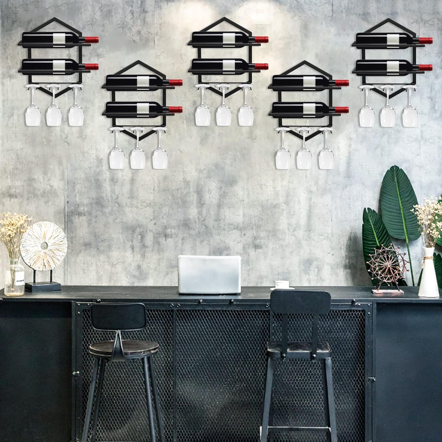 • 【2-IN-1 Wine Display Rack】Our wall mounted wine bottle holder presents your precious wine bottles, goblets in a stylish way, shows a unique artistic atmosphere. Wine rack holds 2 bottles of wine, or champagne, and 3-6 goblets.