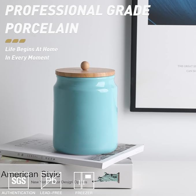 Sweejar Ceramic Kitchen Canisters, 58 FLOZ Porcelain Food Storage Jar with Airtight Seal Wooden Lid, Home Container Serving for Coffee Beans, Tea-leave, Sugar, Salt, Tool Bucket (Turquoise)