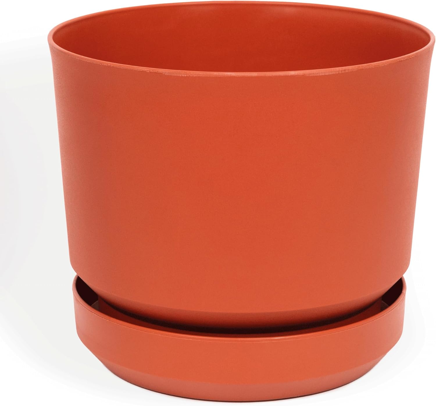 Elly Décor 14 inch Plastic Cylinder Planter Pot with Self-Watering Saucer and Drainage Hole,Lightweight & Extremely Durable, 14"x 14", Terracotta