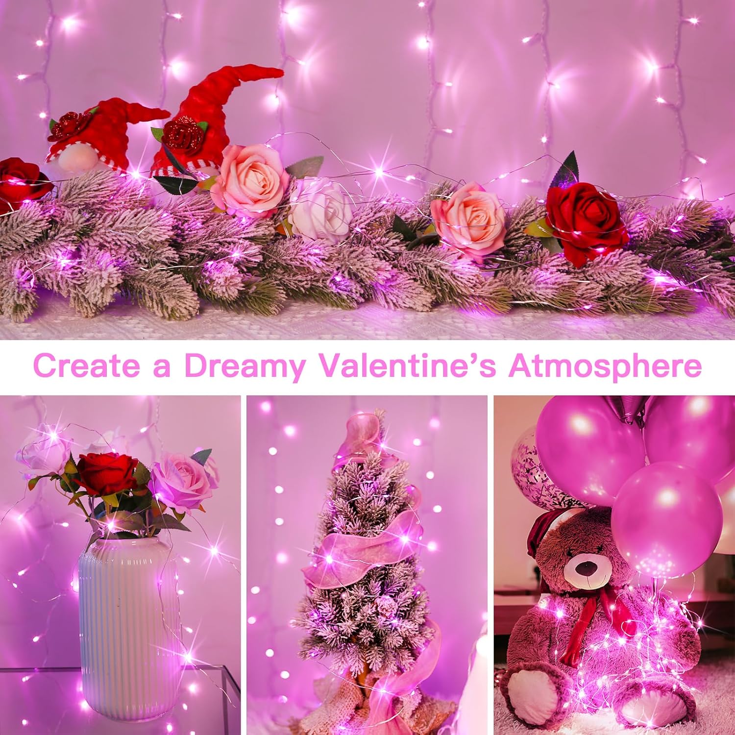 • 💗ILLUMINATE LOVE WITH PINK LIGHTS:Pink valentines lights serve as a enchanting and romantic embellishment for Valentine's Day. Whether delicately draped around a room, elegantly adorning a dinner setting, or framing a cherished moment, these fairy lights add a touch of magic to the celebration.