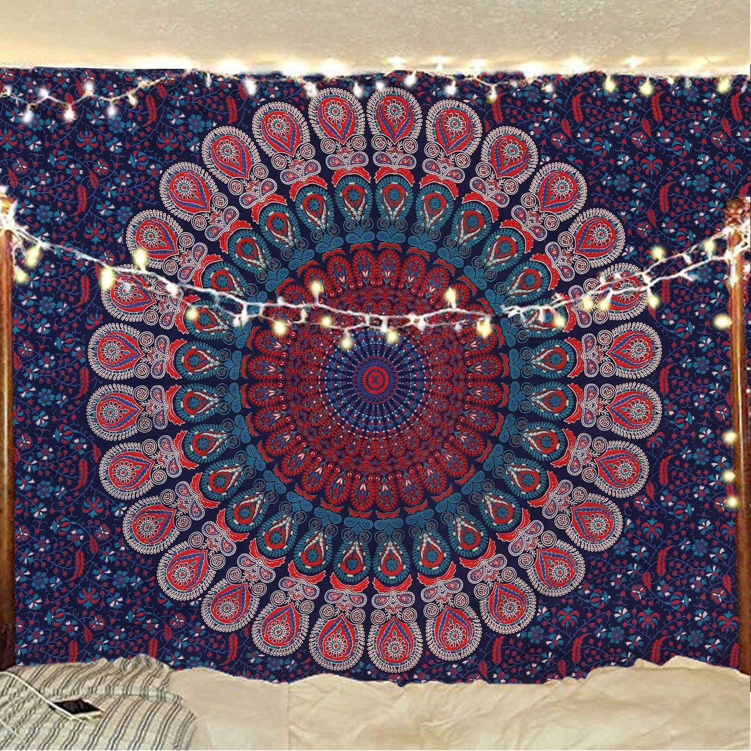 Bless International Handmade Indian hippie Bohemian Psychedelic Peacock Mandala Wall hanging College Dorm Beach Throws Table Cloth Bedding Tapestry (Midnight Blue, Medium(54x60Inches)(137x152cms))