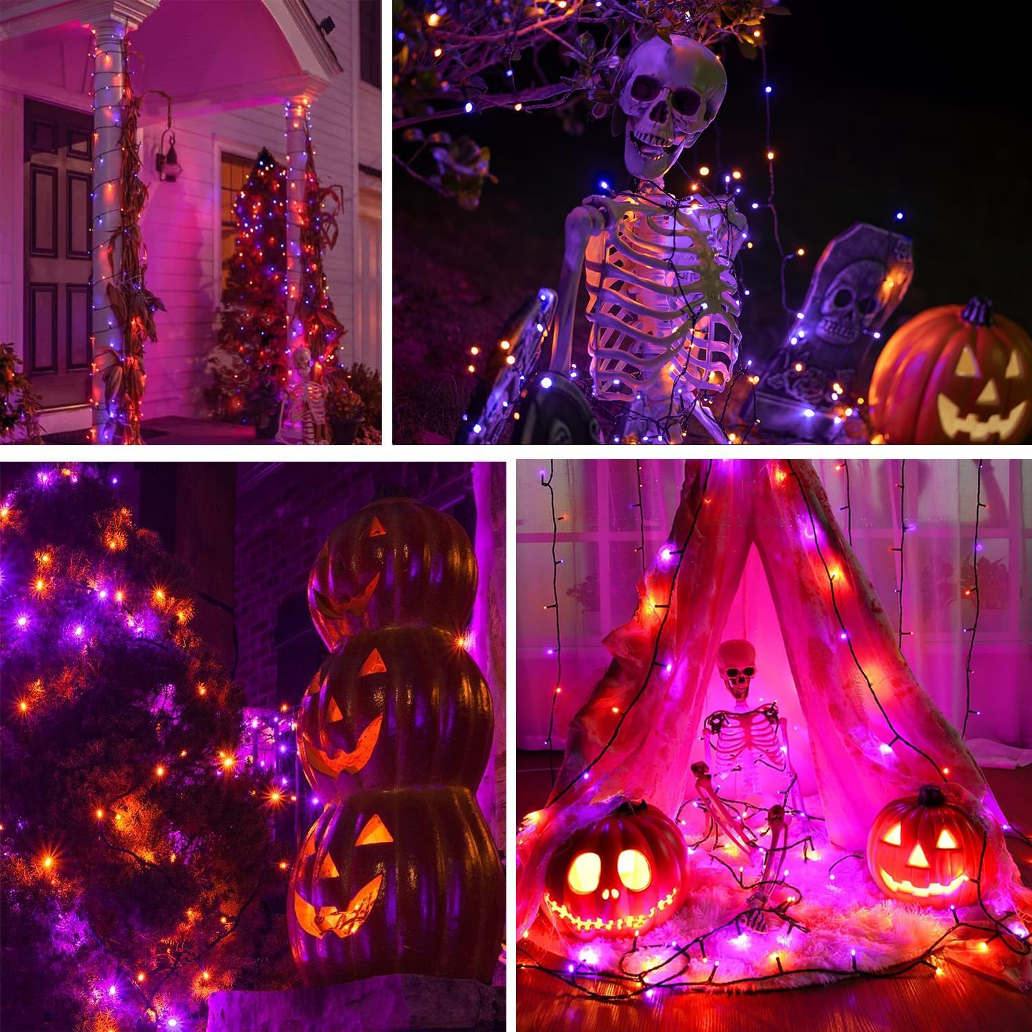 75.8 FT 200 LED Orange and Purple Halloween Tree Lights Indoor Outdoor, Extendable Halloween Led String Lights with Memory Function & Timer & 8 Modes, Waterproof Twinkle Light for Horror Party Decor