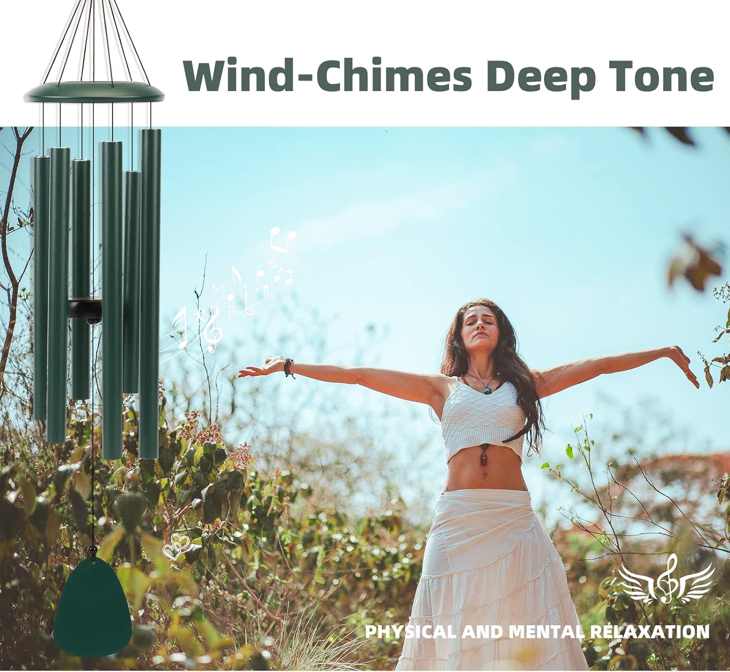 Wind-Chimes-Outdoor-Deep-Tone, Large Soothing Melodic Tones Windchimes, Wind Chimes for Outside, Memorial Wind Chime Best Gift for Mom Women Grandma Neighbors(32" Forest Green Coated Aluminum)