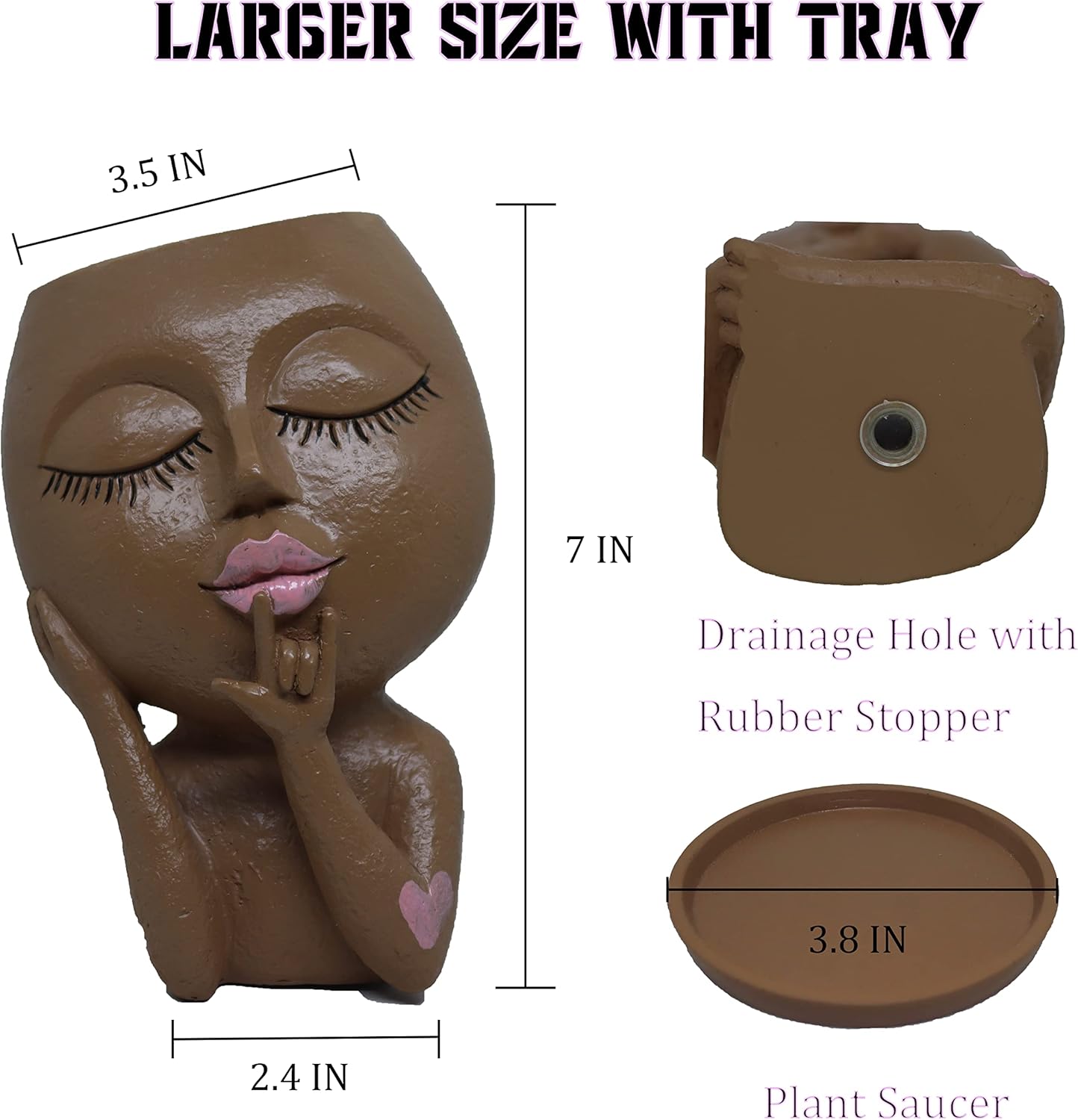 • 🌵 Size of Planter Pots: The size of this unique head vase is carefully designed by us. Based on sociology and aesthetics, we found this size to be the perfect way to make this vase funny and cute. The opening diameter of the flower planter is 3.5 inches, bottom length is 2.4 inches, height is 7 inches. The Diameter of the tray is 3.8 inches.