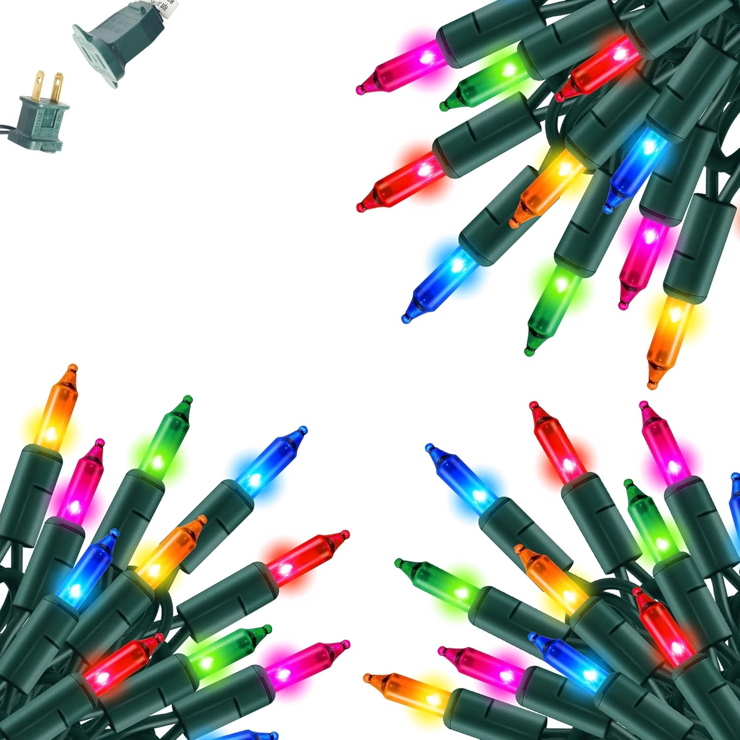 • Christmas Lights: Includes 3 x 20 ft light strings, 3 x spare fuses, and 12 x additional incandescent bulbs for a total of 100 bulbs