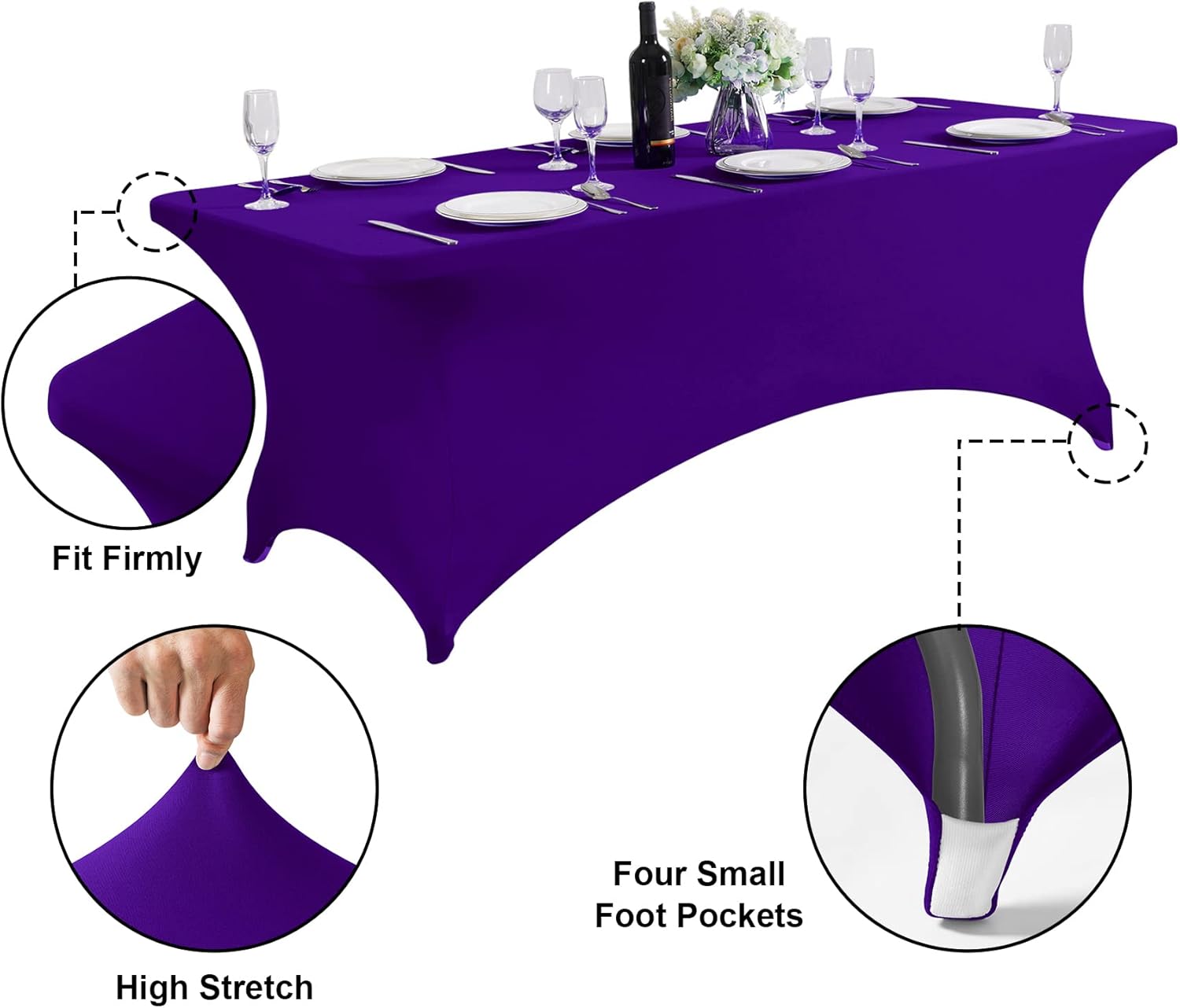 SuperO 2Pack Waterproof Spandex Table Cover for 8FT Table Universal Fitted Stretch Tablecloth for Party, Banquet, Wedding and Events-Purple