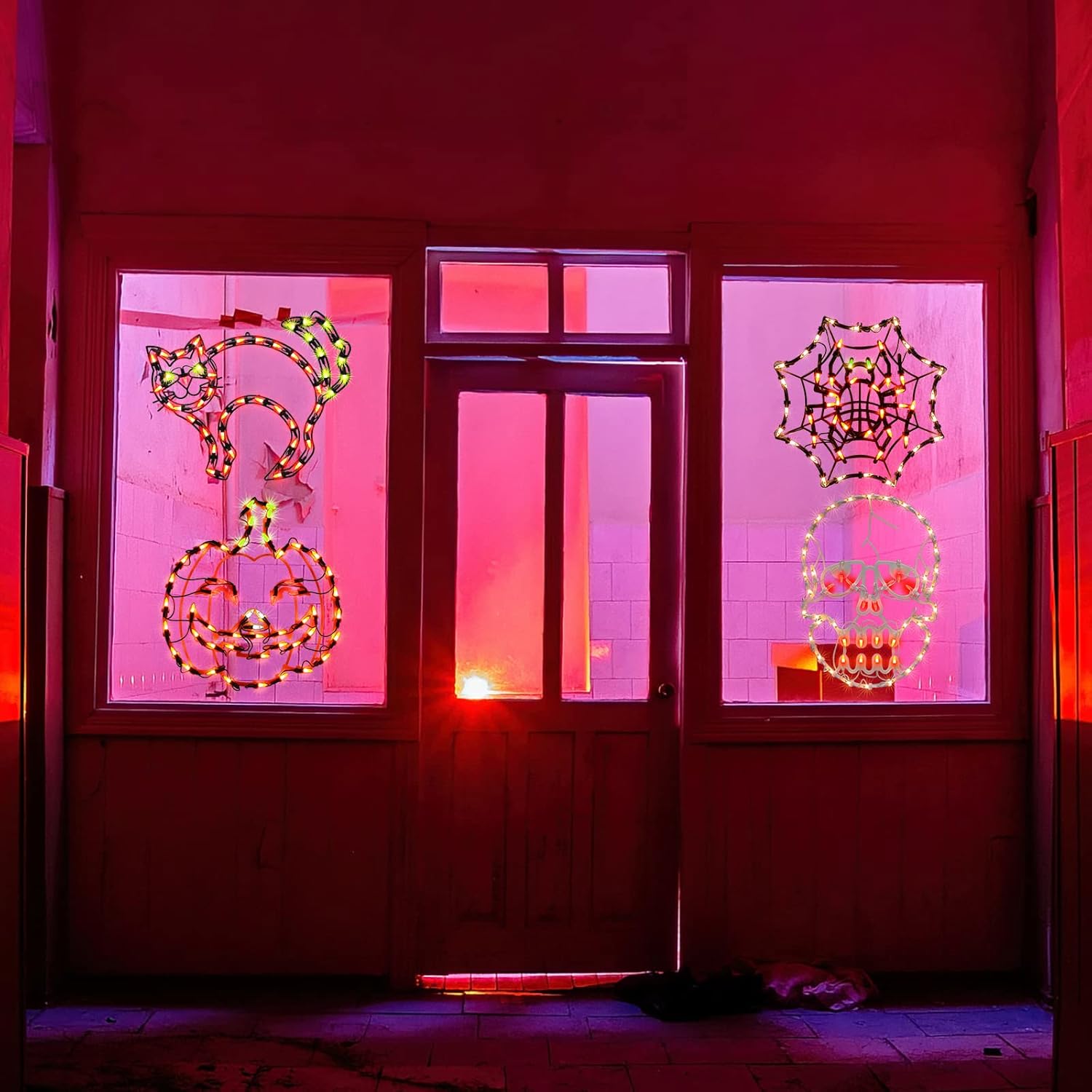 • Wide Applications: you can display the Cobweb, Jack-O-lantern,Cat and Skull window lights on window, wall, tree, fence or any other place indoor outdoor you want to decorate with good waterproof performance, ideal choices for haunted houses, Halloween party, theme party, Halloween scene and so on.