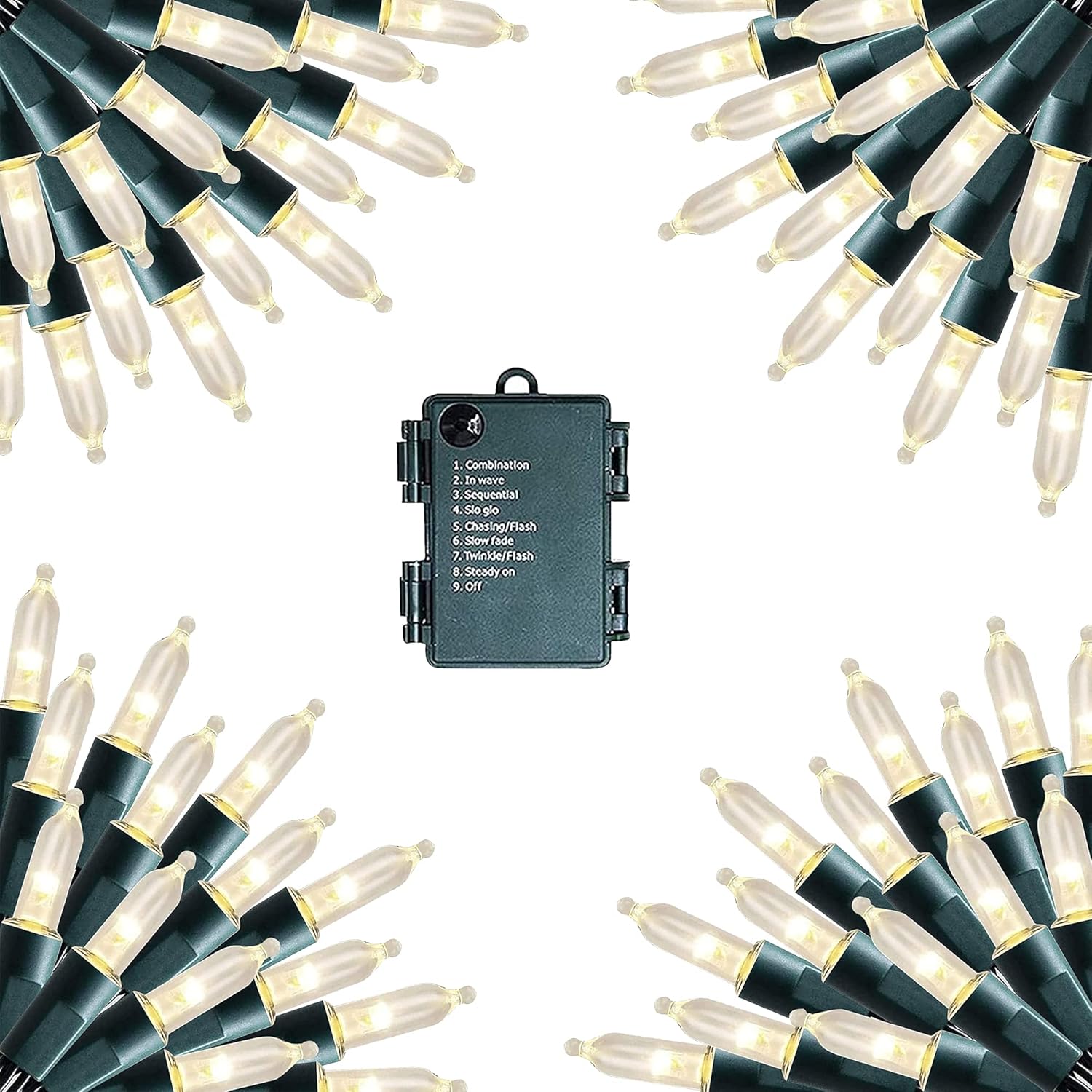 • 8 Lighting Modes: Dazzle Bright mini string lights has 8 different lighting methods, including combination, in wave, sequential, slo glo, chasing/flash, slow fade, twinkle/flash, steady on. Press the button on the battery box to select the lighting mode you like.