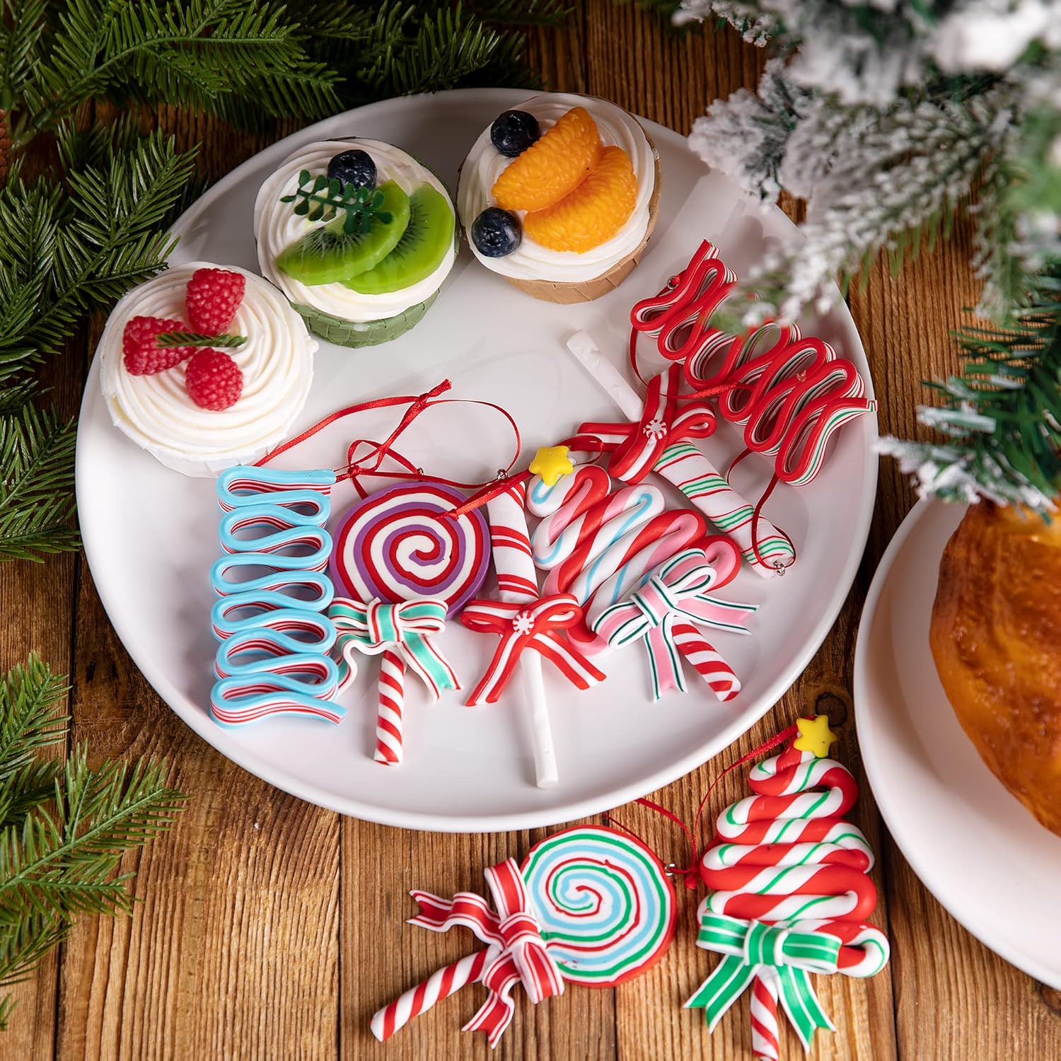 codree 8 PCS Christmas Lollipop Ornaments- Christmas Candies Polymer Clay Ornament- Xmas Decor Candy Cane Hanging Decorations for Xmas Tree Party Supplies