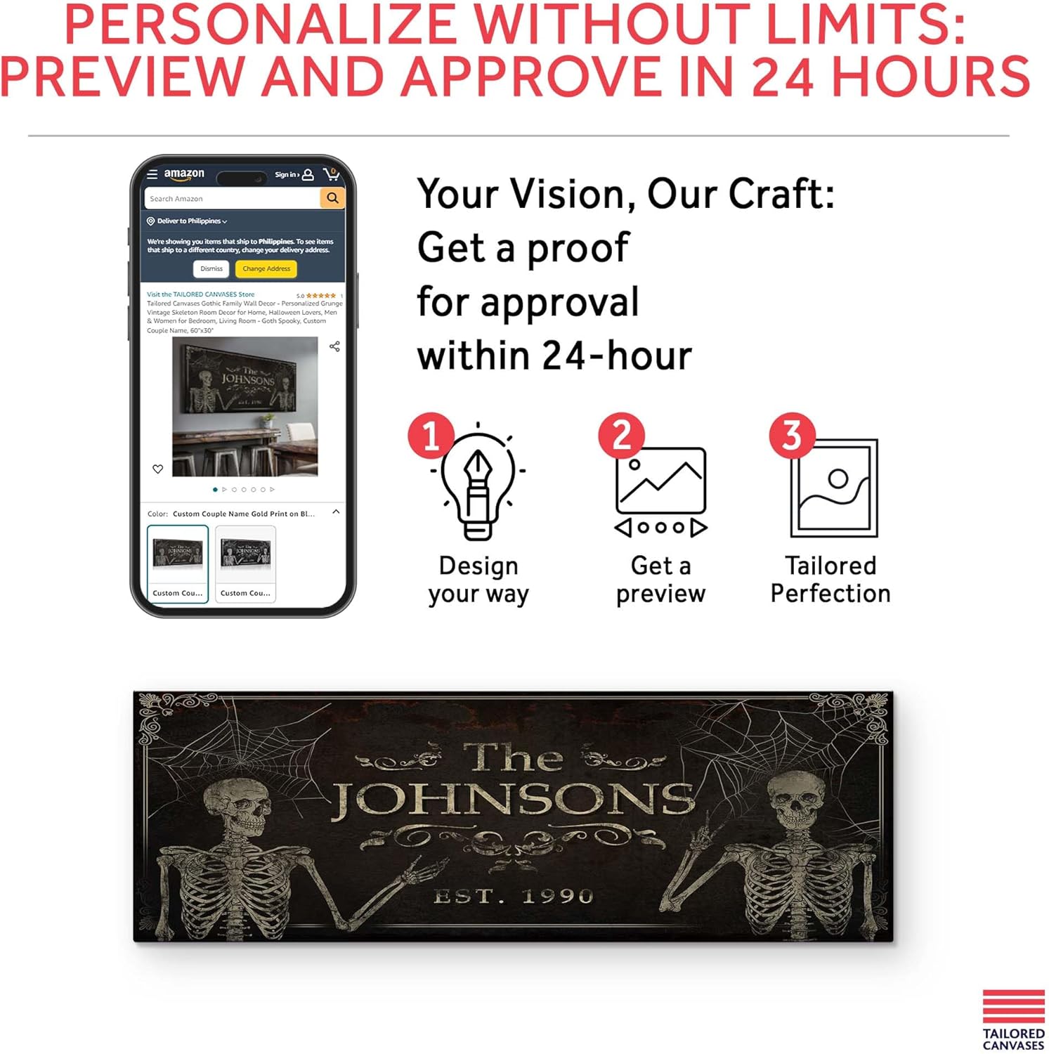 Tailored Canvases Gothic Family Wall Decor - Personalized Grunge Vintage Skeleton Room Decor for Home, Halloween Lovers, Men & Women for Bedroom, Living Room - Goth Spooky, Custom Couple Name, 48"x16"