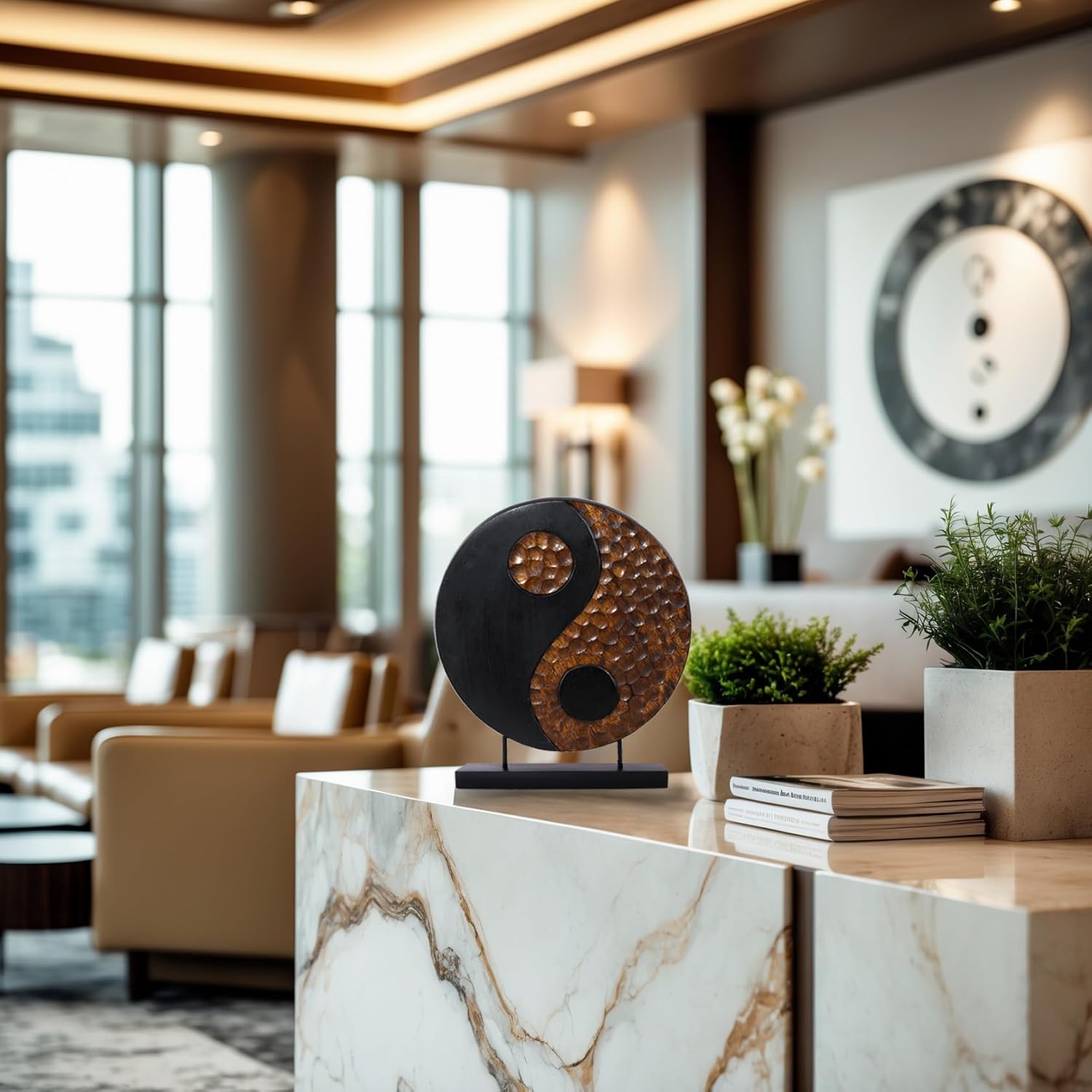Decozen Solid Wood Yin Yang Sculpture Ideal for Home, Mantel, Fireplace, and Foyer Decor - Valentines Day Gifts from Daughter, Son, Husband