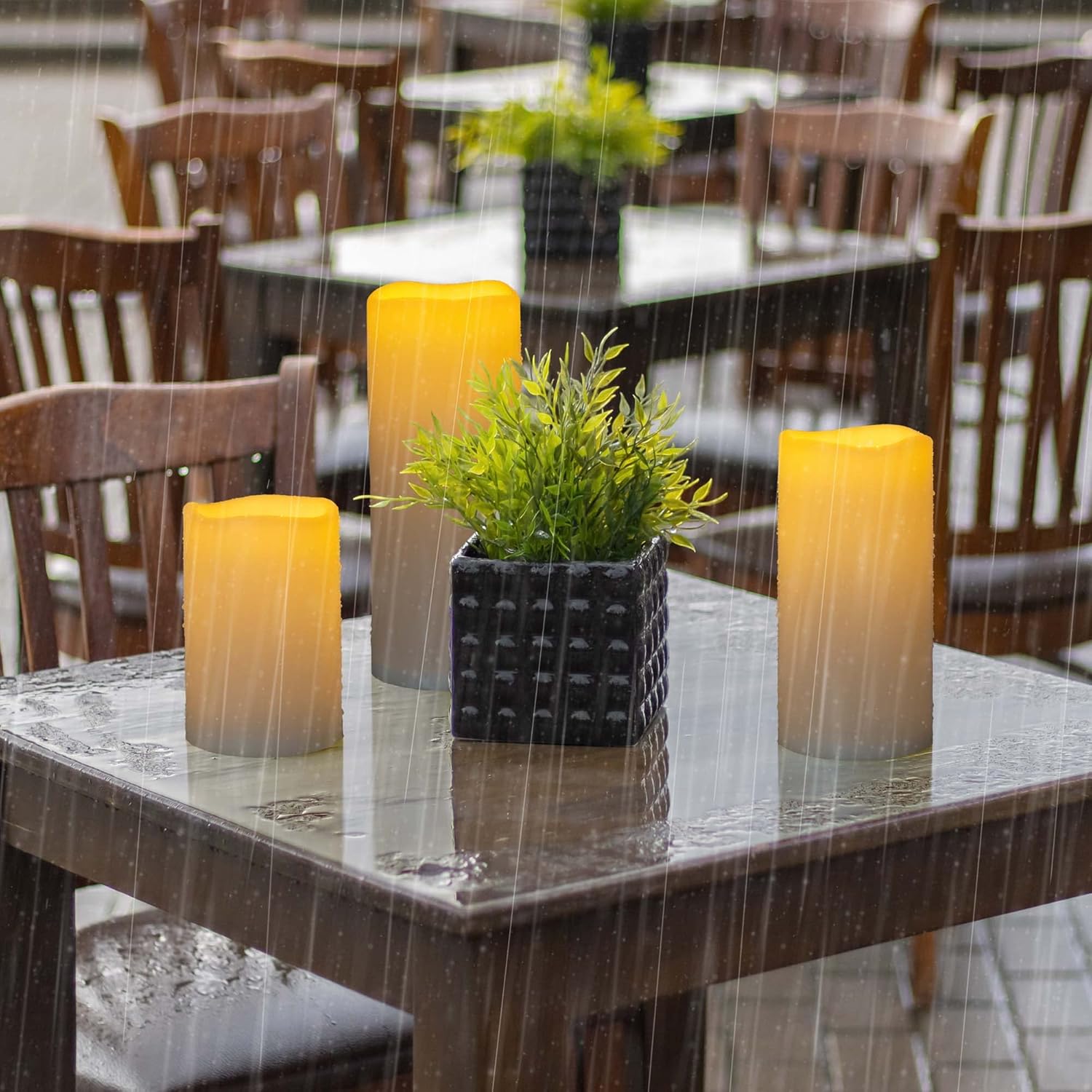 • Waterproof Candles: These plastic LED candles have the real wax candles appearance and feelings, won't melt or deform even in direct sunlight. A perfect match for outdoor lanterns. The IP44 waterproof feature allows you to use them even in the rain and work well in cold environments. PLEASE NOTE: Do not soak its bottom in water for a long time.