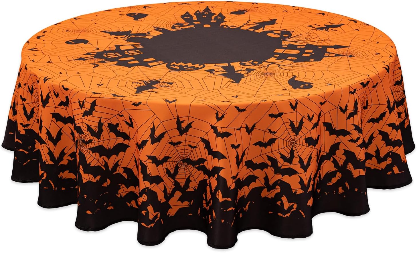 • FOR YOUR SPOOKY TABLE: This festive printed tablecloth measures 70" Round in size, appropriate for a table that can fit 4-6 people, ghouls, or goblins
