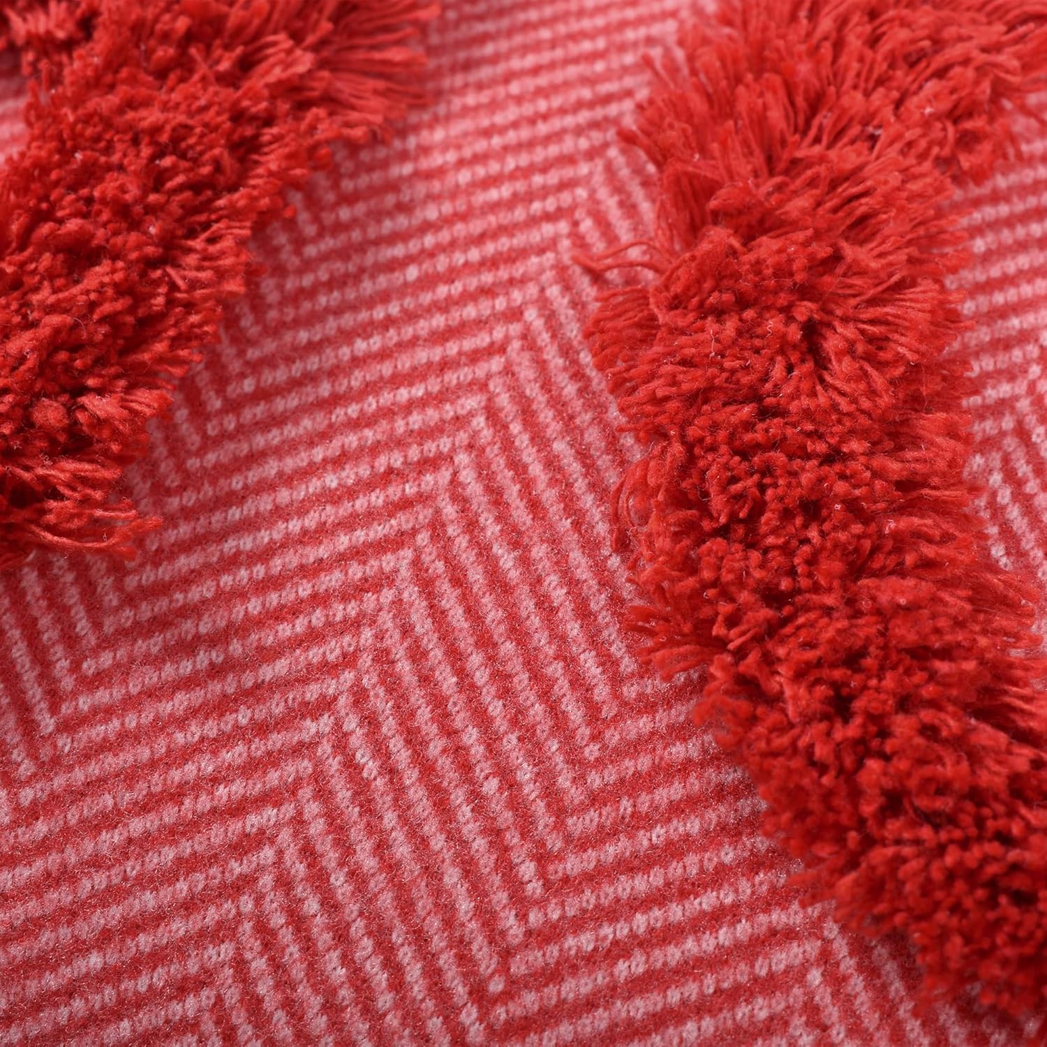 • 【Herringbone Throw Pillow Covers】Front: Red herringbone polyester woolen cloth, Reverse: 100% cotton red canvas
