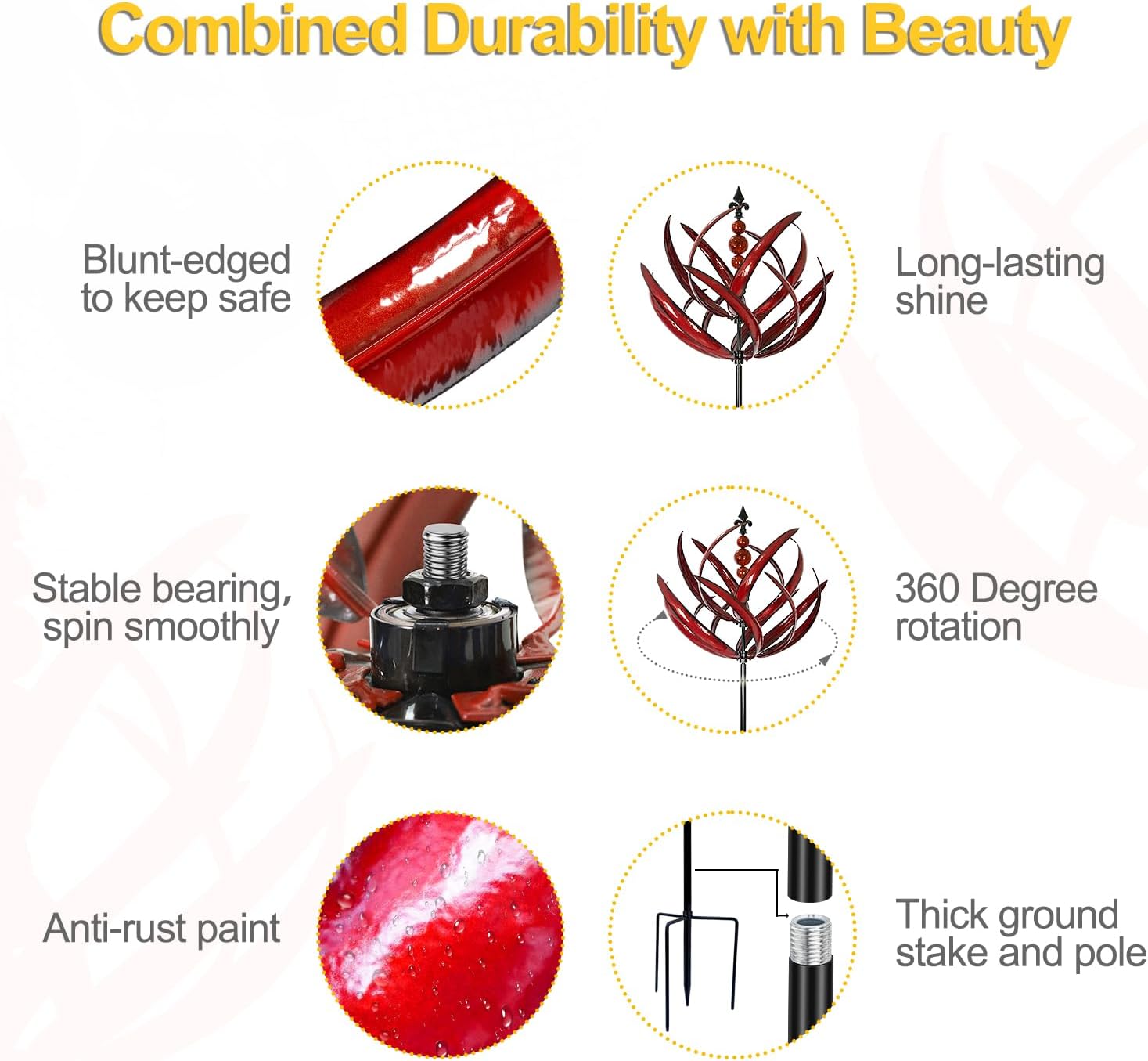• 【Unique Design for Garden Decor】Our garden wind spinner capture the shimmering sunlight and make any garden stand out. When you are outside and get close to nature, the large wind spinner will give you a perfect release with your family