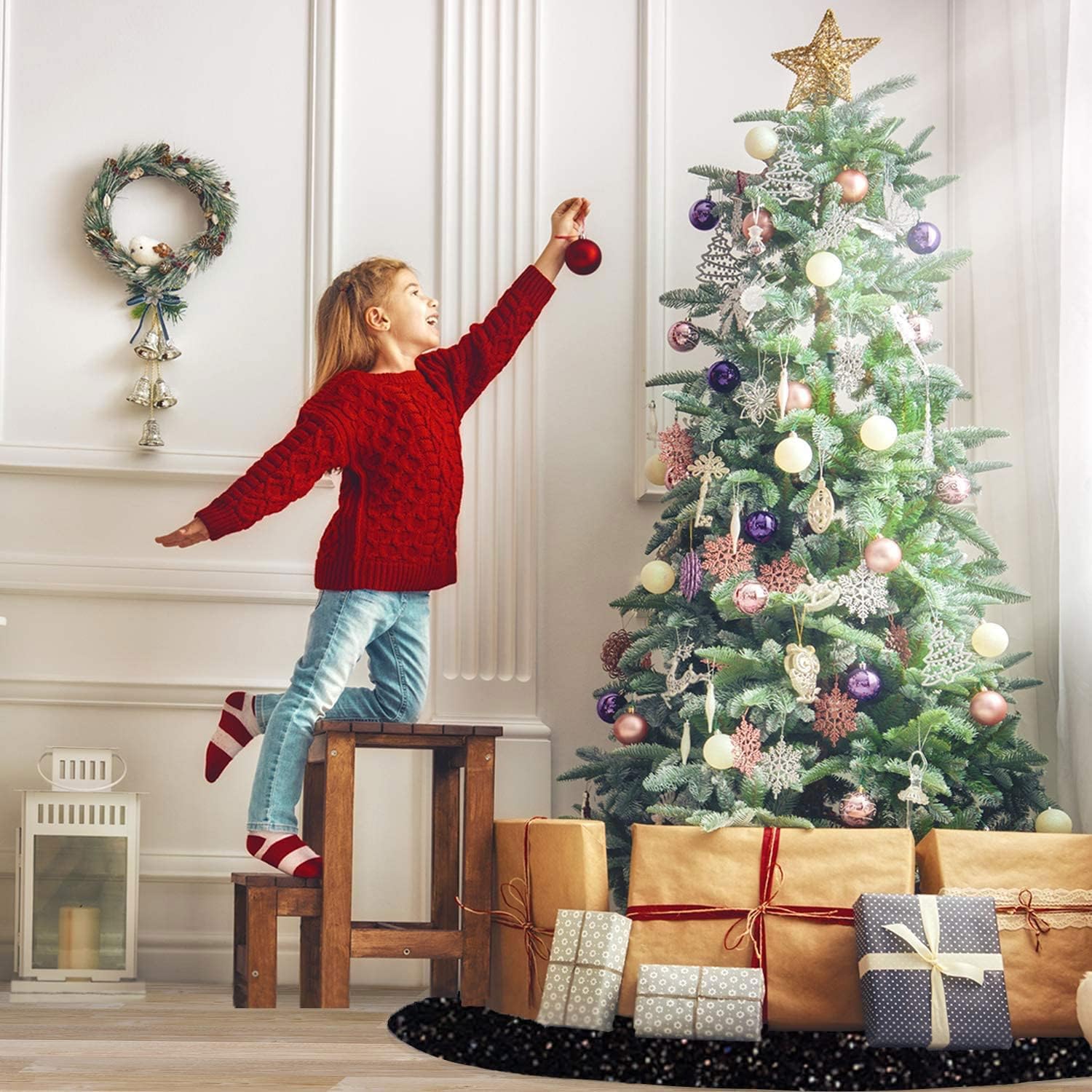 • ❄️【Sturdy Material - Black Santa Tree Skirt】Our Christmas sequin tree skirts are made of premium 5mm sequin fabric and thick velvet material, which can show bright color at any angle. Different from the traditional sequin Santa trees skirt, this Santa tree mat won't fall off sequins, more elegant and shiny, adding festive fun to your home.