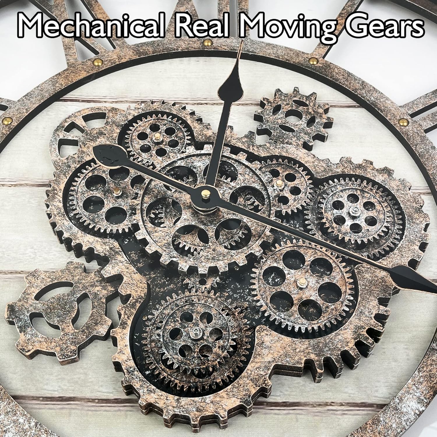• 🧭【Real Moving Gears Wall Clock】The rustic wall clock is design with multi-real moving gears, put battery in, various gears start working, makes a subtle relaxing sound and makes a living element in the environment in where it is placed, vintage and magical, catch all eyes of visits.